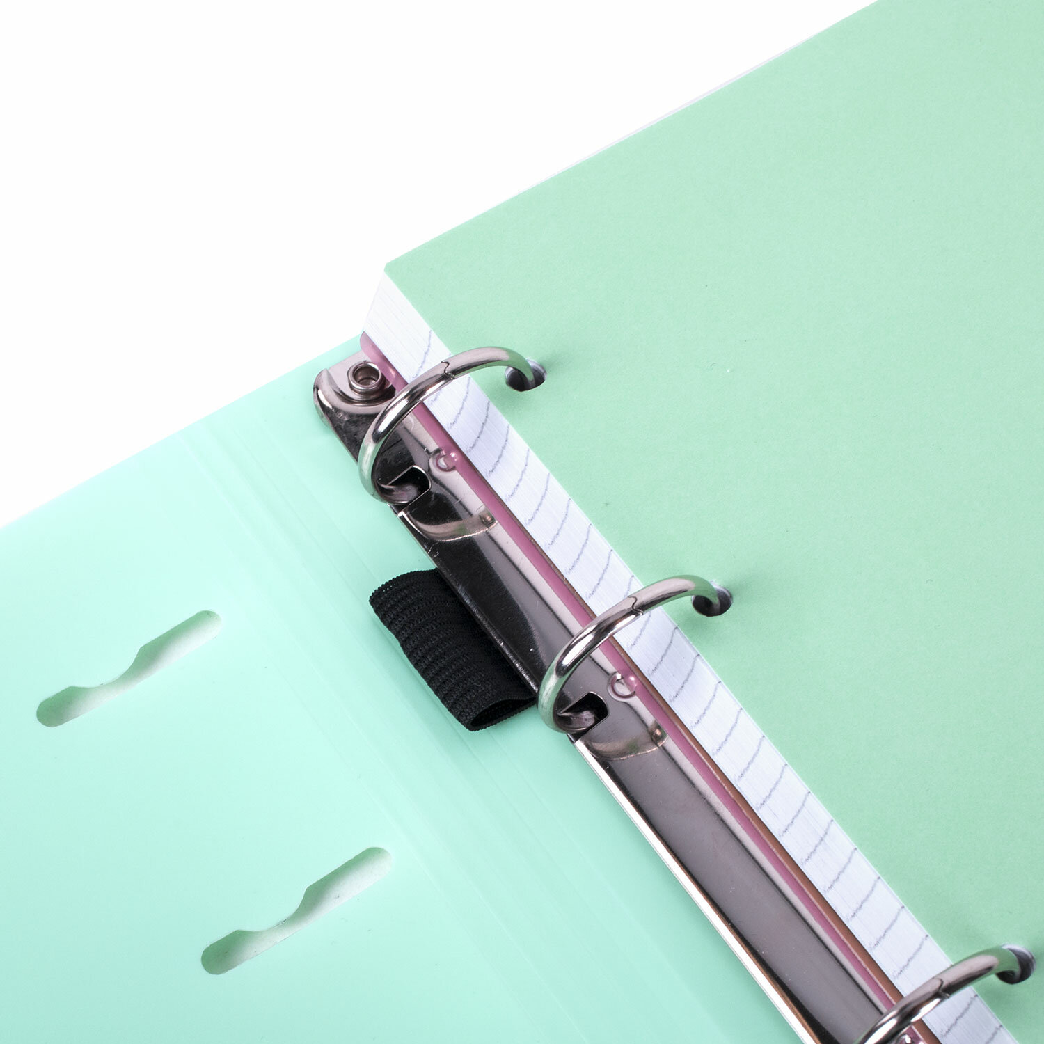 - Тетрадь на кольцах А5 175х220 мм, 120 л., пластик, на липучке, с разделителями, BRAUBERG, Мятный, 404638