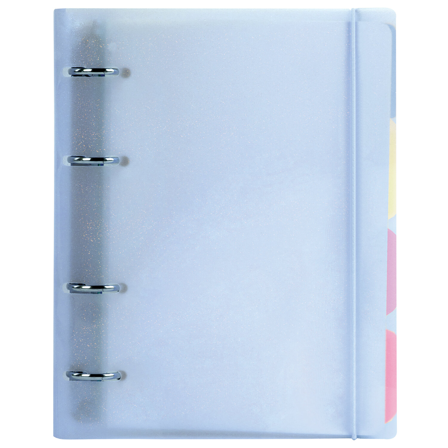 - Тетрадь на кольцах А5 175х220 мм, 120 л., пластик с блестками, с резинкой и разделителями, BRAUBERG, Голубой, 404633
