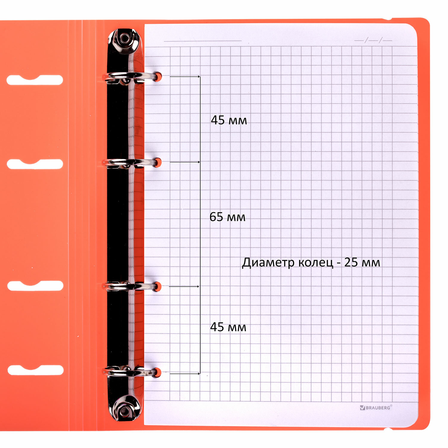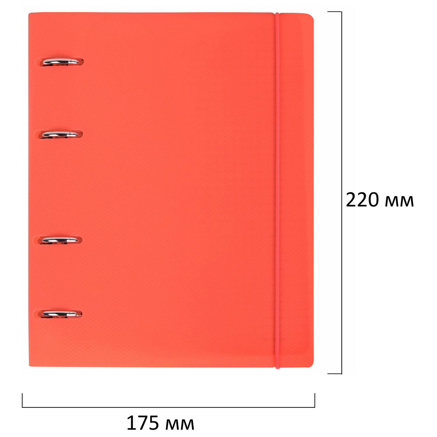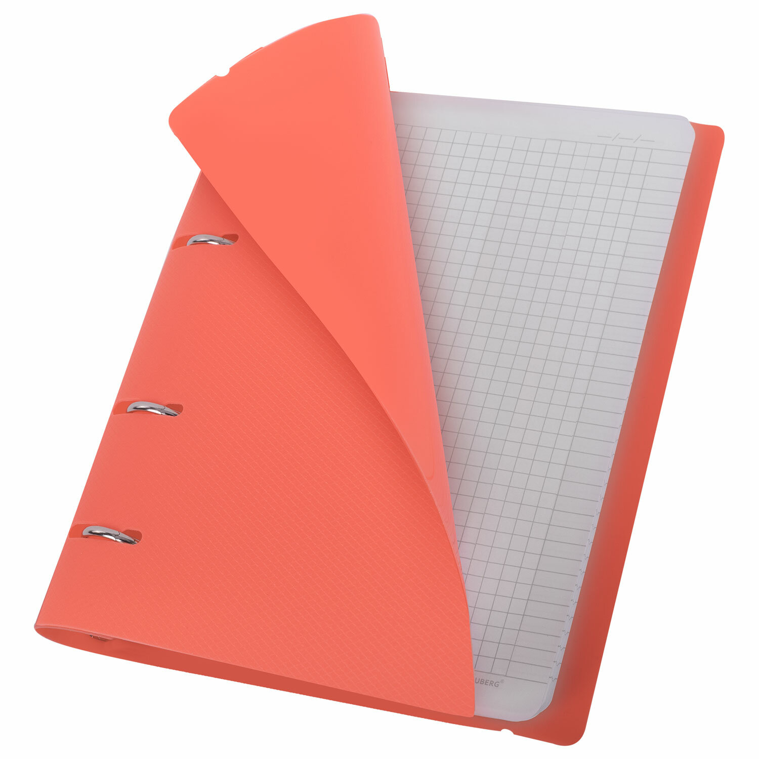 - Тетрадь на кольцах А5 175х220 мм, 120 л., пластик, с резинкой, BRAUBERG, Коралловый, 404621