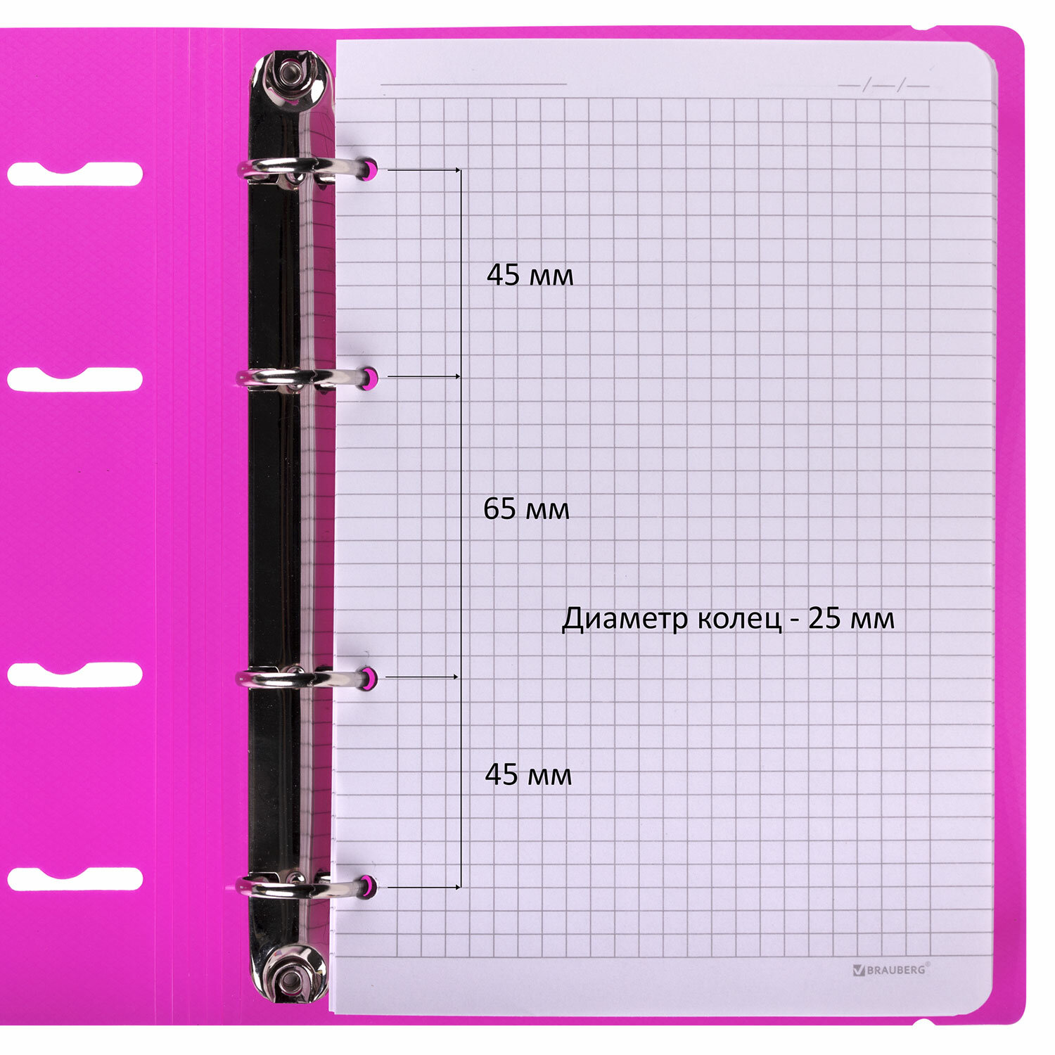 - Тетрадь на кольцах А5 175х220 мм, 120 л., пластик, с резинкой, BRAUBERG, Розовый, 404622