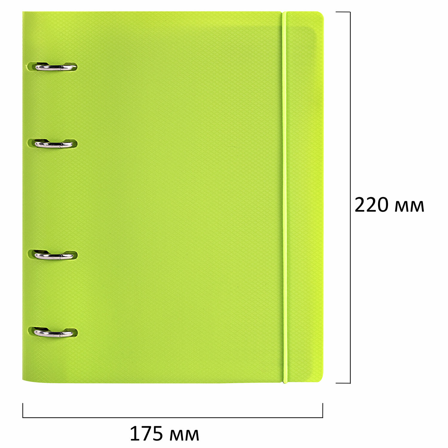 - Тетрадь на кольцах А5 175х220 мм, 120 л., пластик, с резинкой, BRAUBERG, Салатовый, 404619