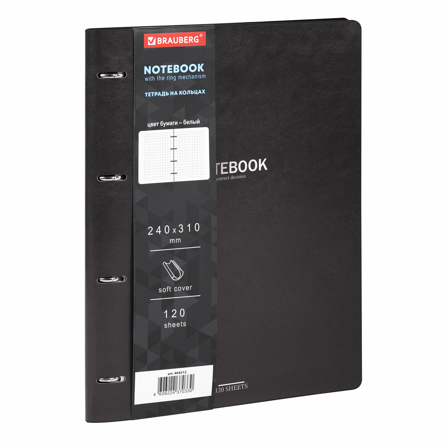 - Тетрадь на кольцах БОЛЬШАЯ А4 (240х310 мм), 120 л., под кожу, BRAUBERG VISTA, Black, 404512