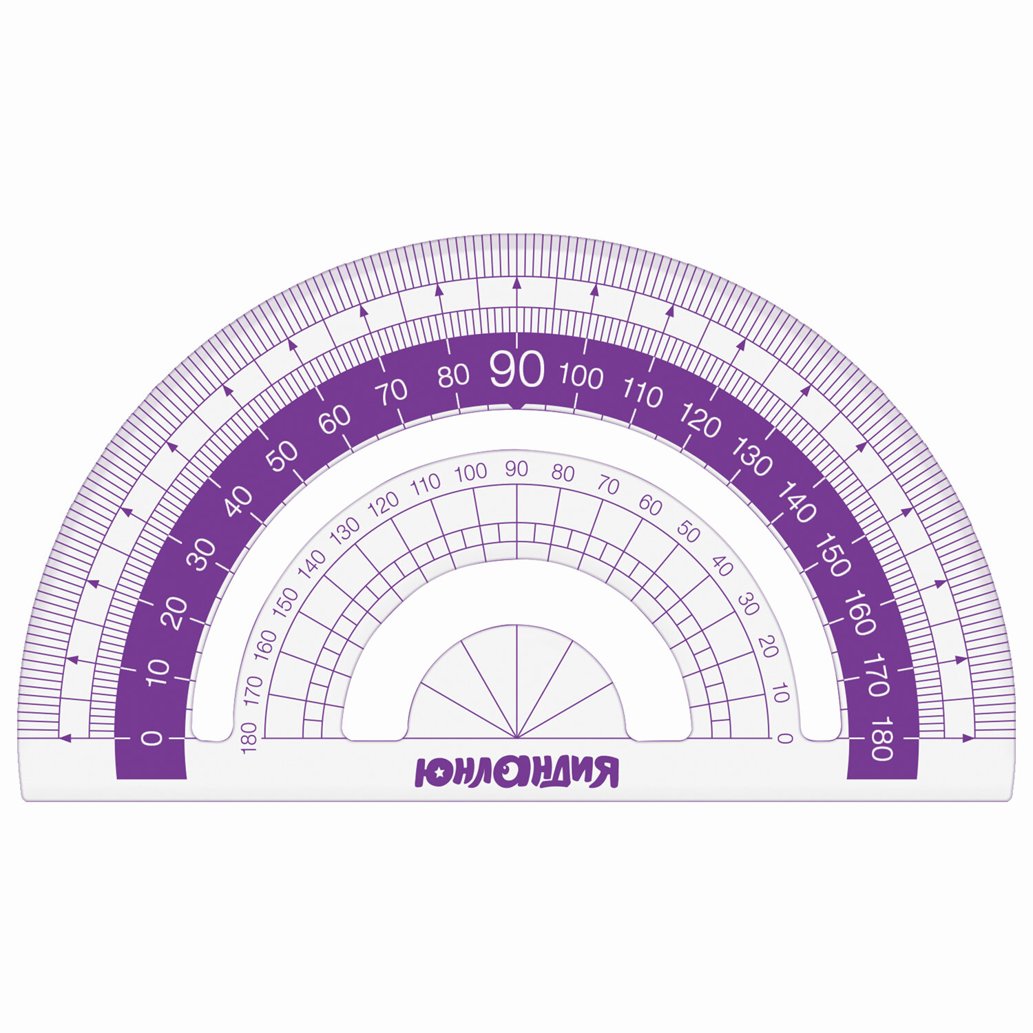 - Набор чертежный малый ЮНЛАНДИЯ "ГЕОМЕТРИЯ" (линейка 15 см, 2 треугольника, транспортир), фиолетовая шкала, 210739