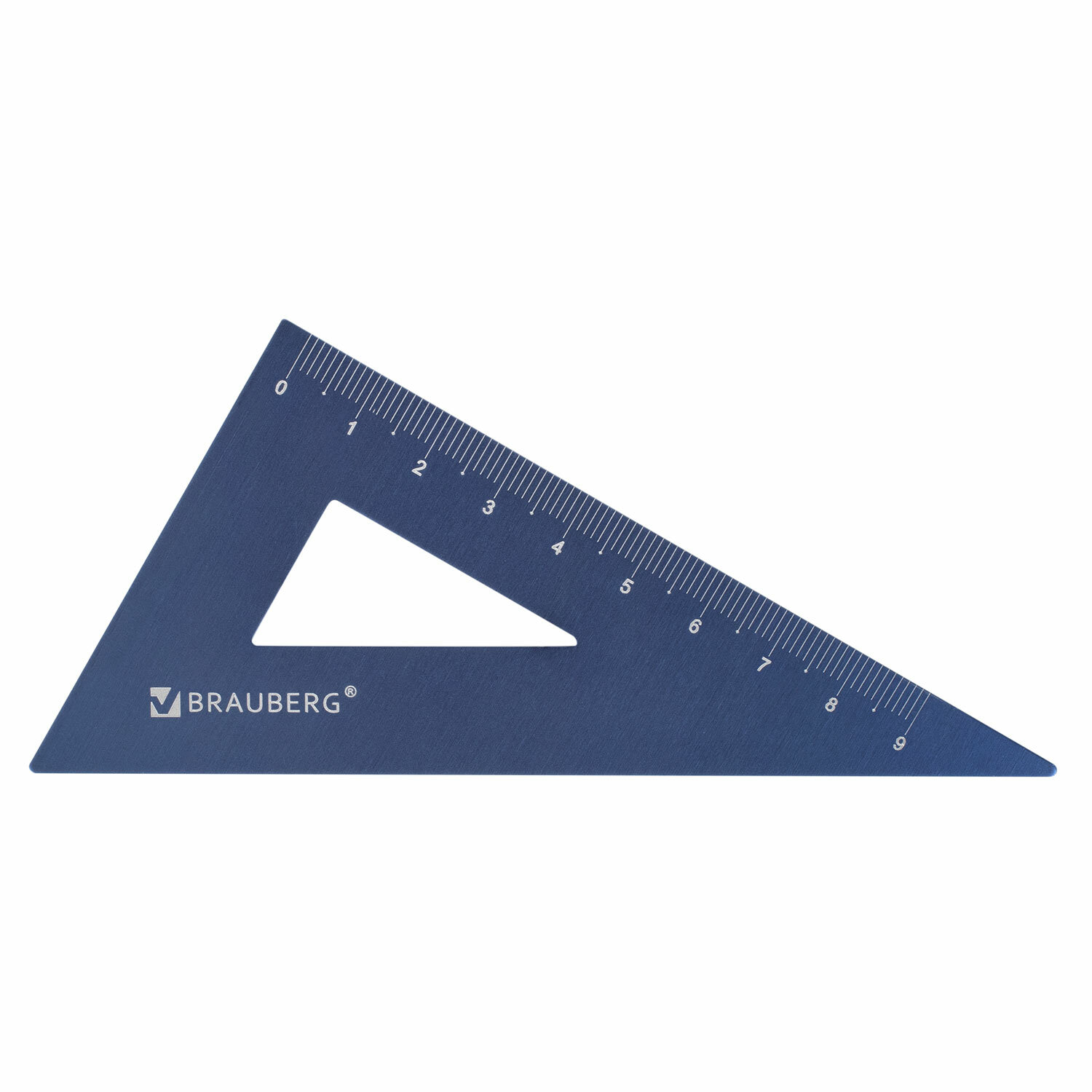 Материал изготовления – анодированный алюминий. Цвет инструментов – тёмно-синий. Набор чертежный металлический BRAUBERG (линейка 15 см, 2 треугольника, транспортир), 210816