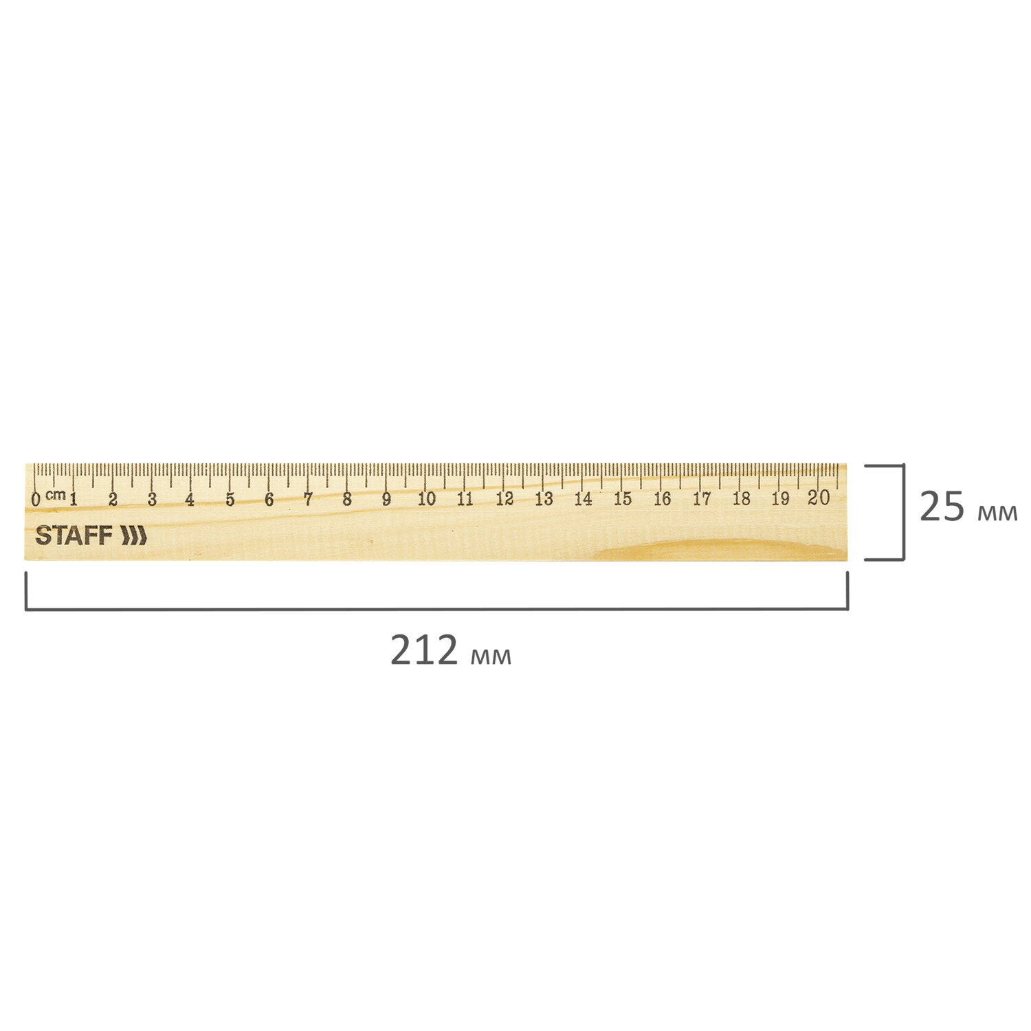 - Линейка деревянная 20 см, STAFF, канадская сосна, 210798