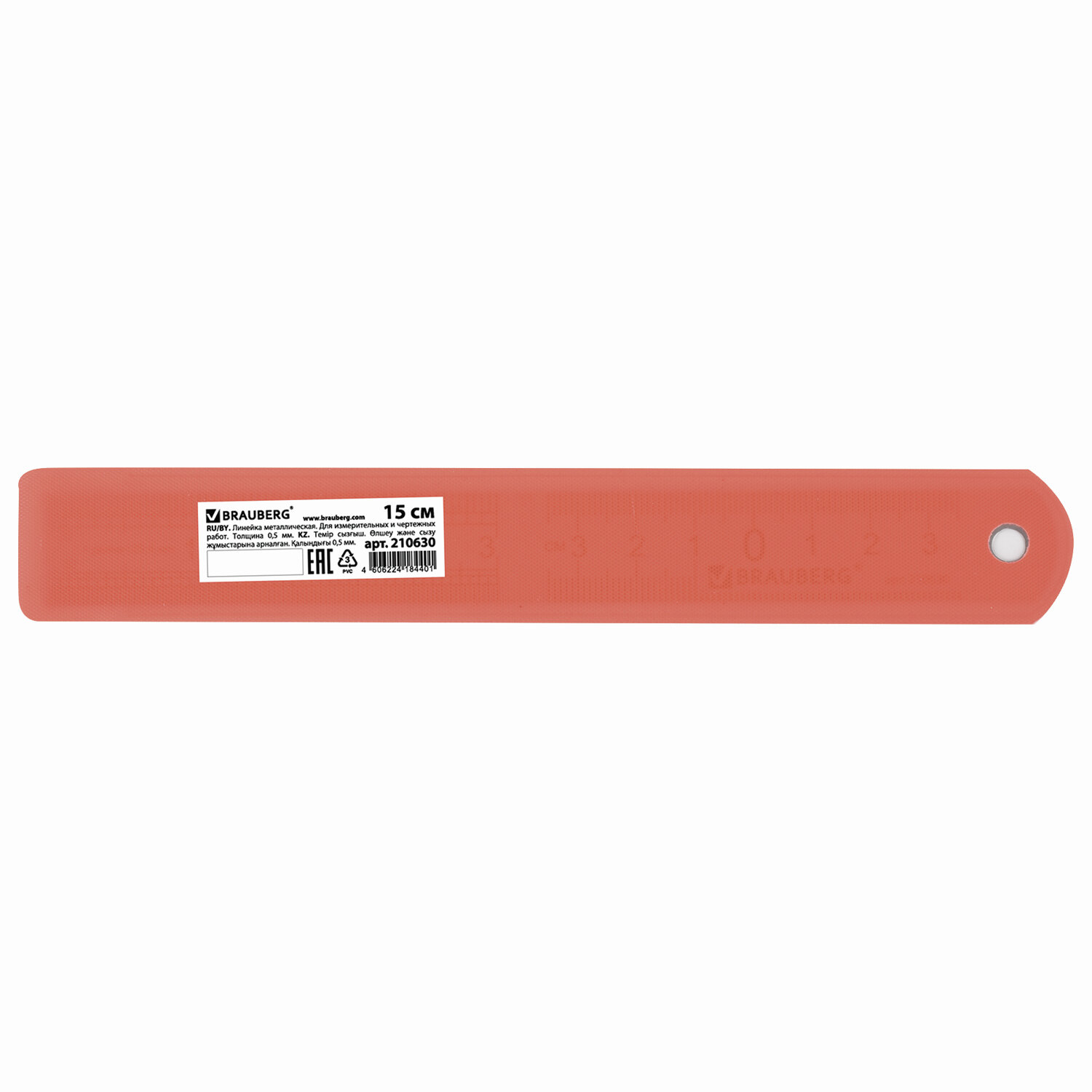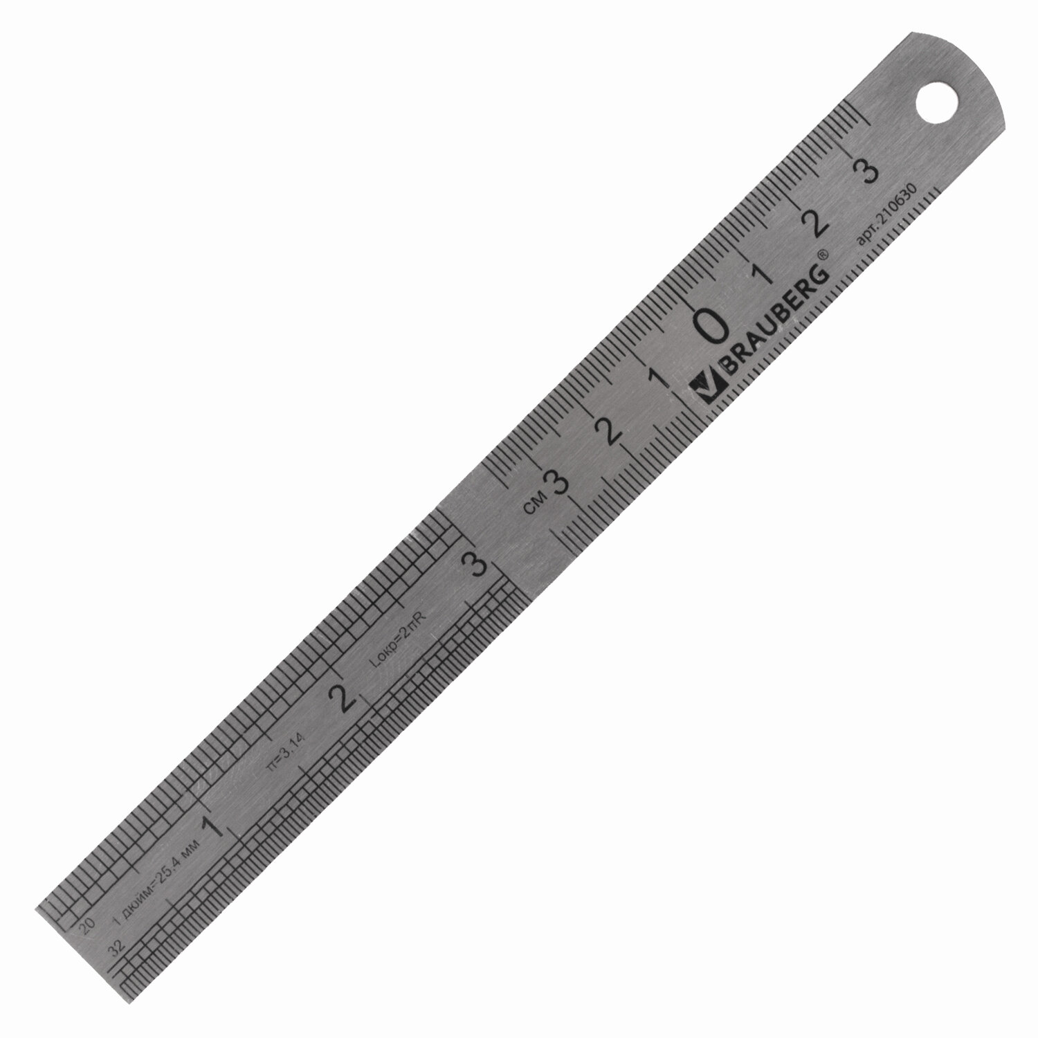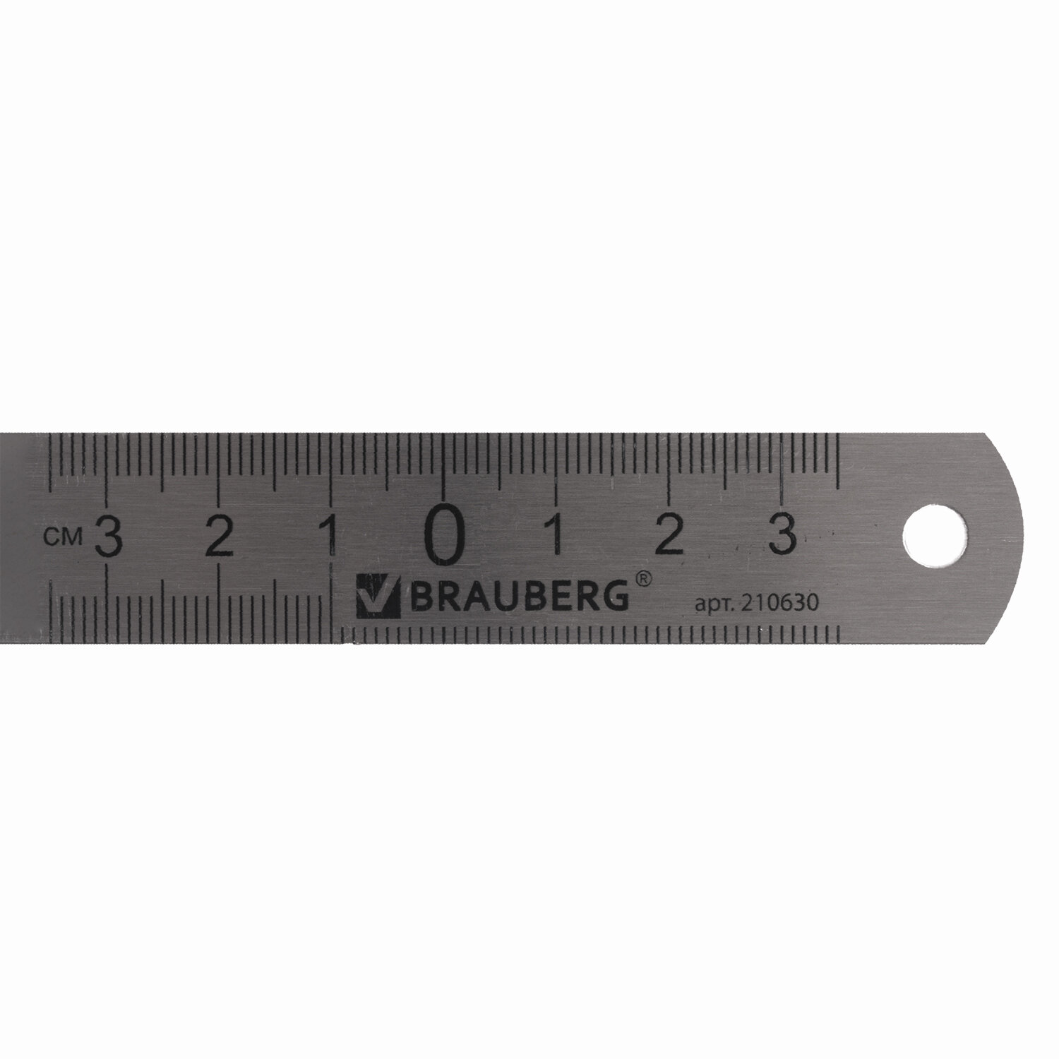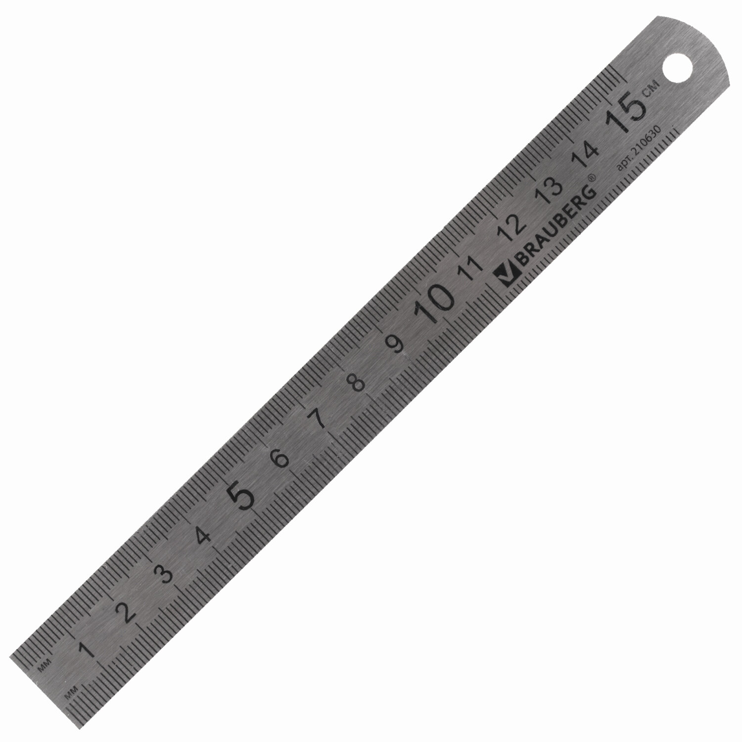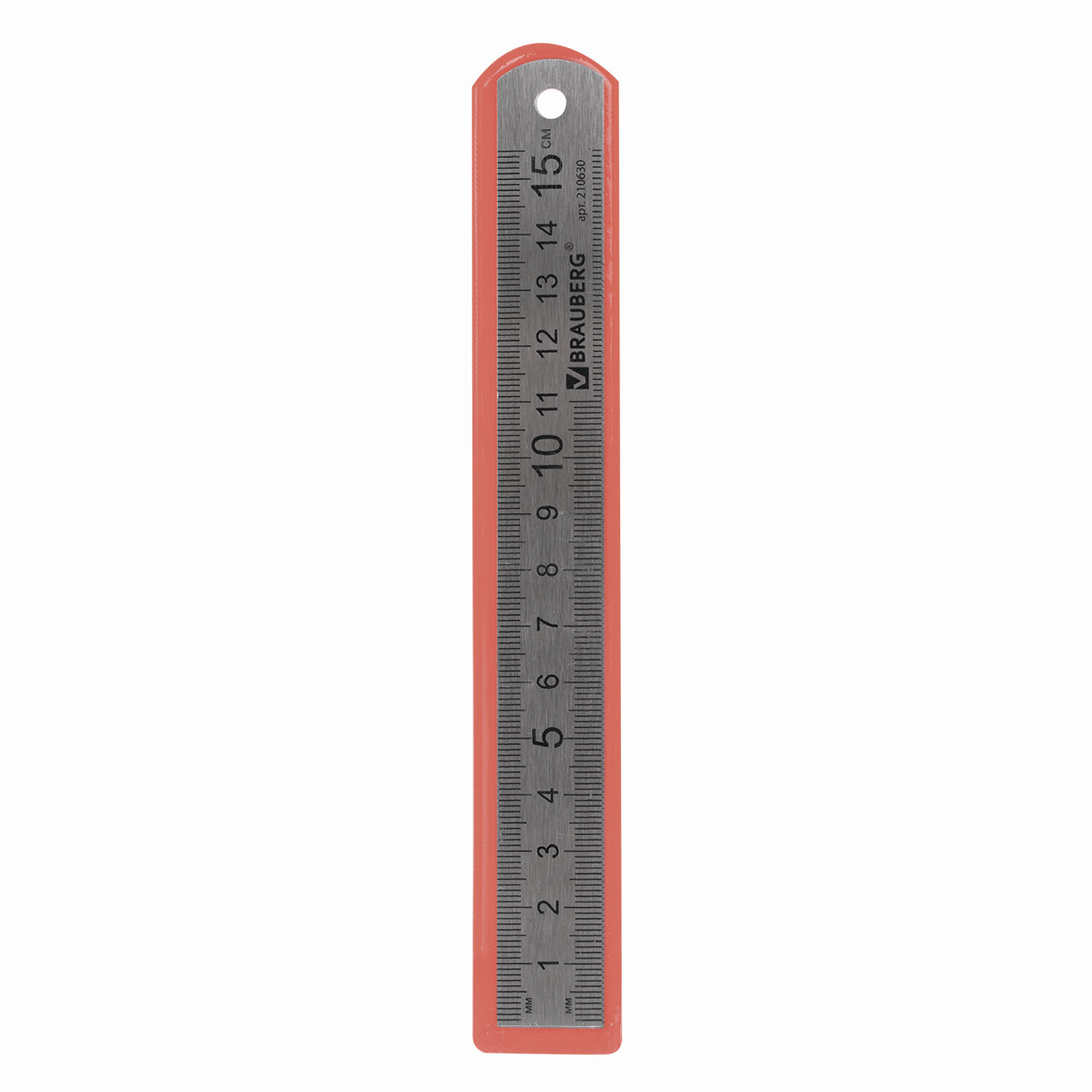 - Линейка металлическая 15 см, BRAUBERG, европодвес, 210630