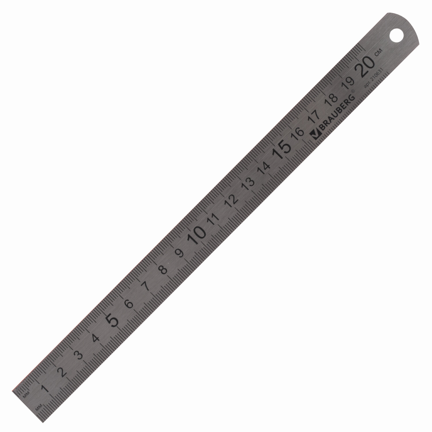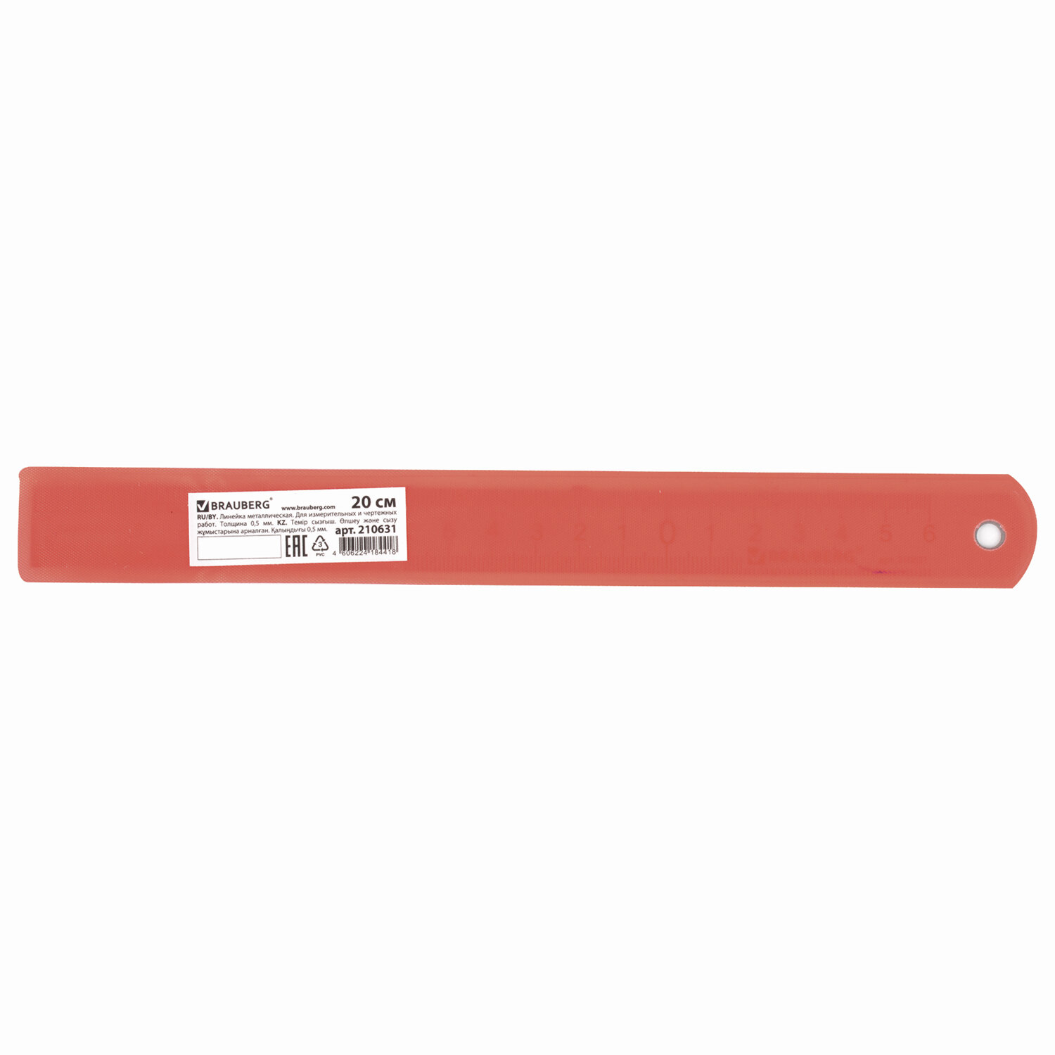 - Линейка металлическая 20 см, BRAUBERG, европодвес, 210631