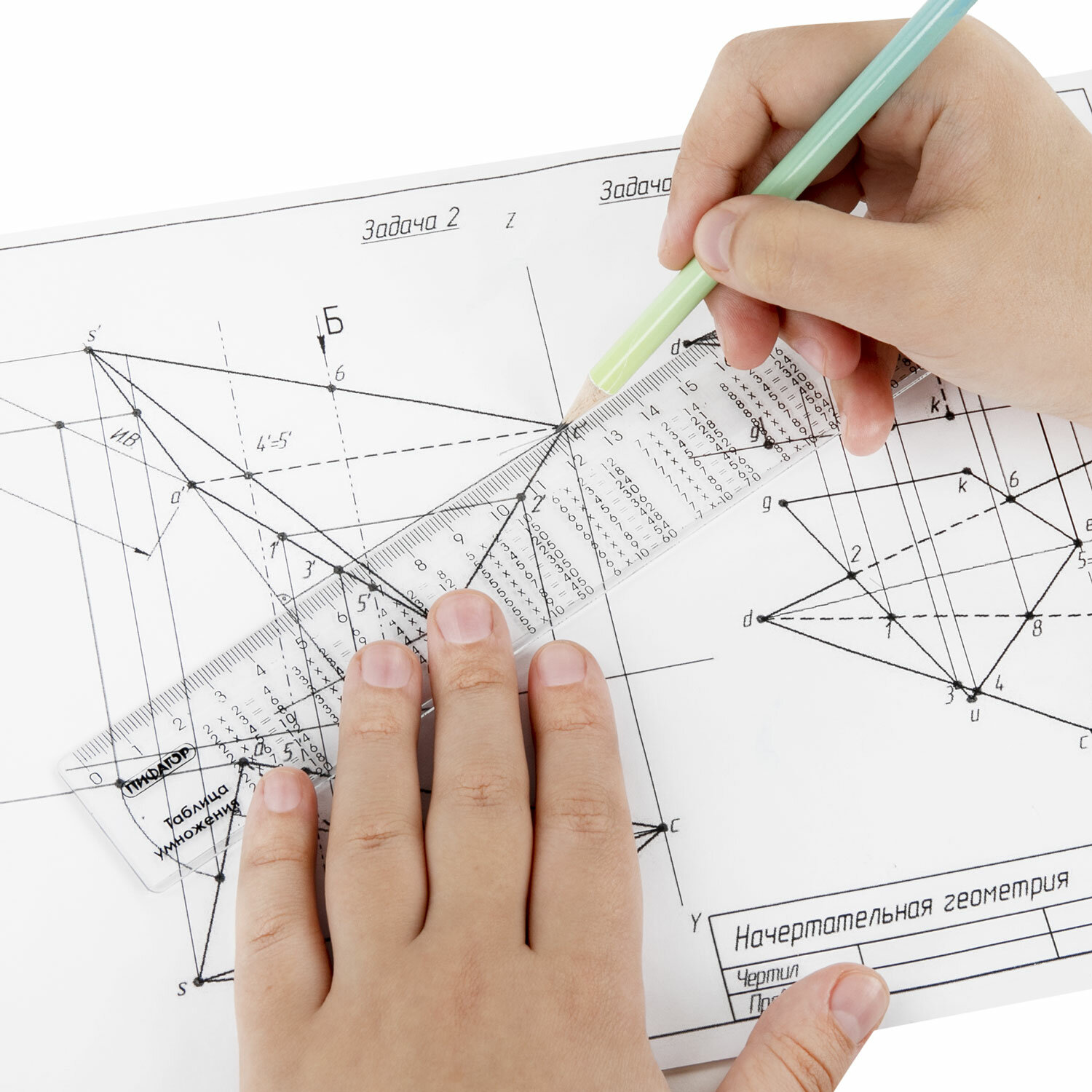 Линейка-шпаргалка (таблица умножения) из прочного пластика с гладкой глянцевой поверхностью. Имеет безопасные закруглённые углы и четкую контрастную миллиметровую шкалу. Длина шкалы составляет 20 см. Линейка пластик 20 см, ПИФАГОР, справочная, таблица умножения, 210616