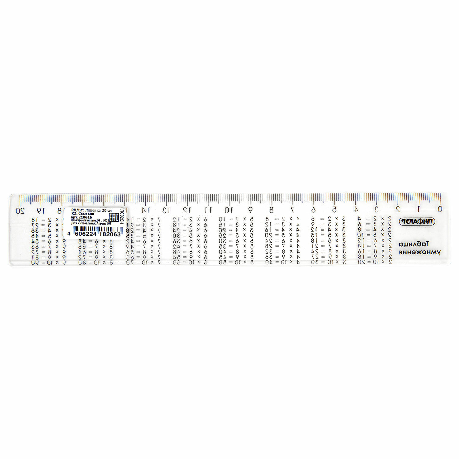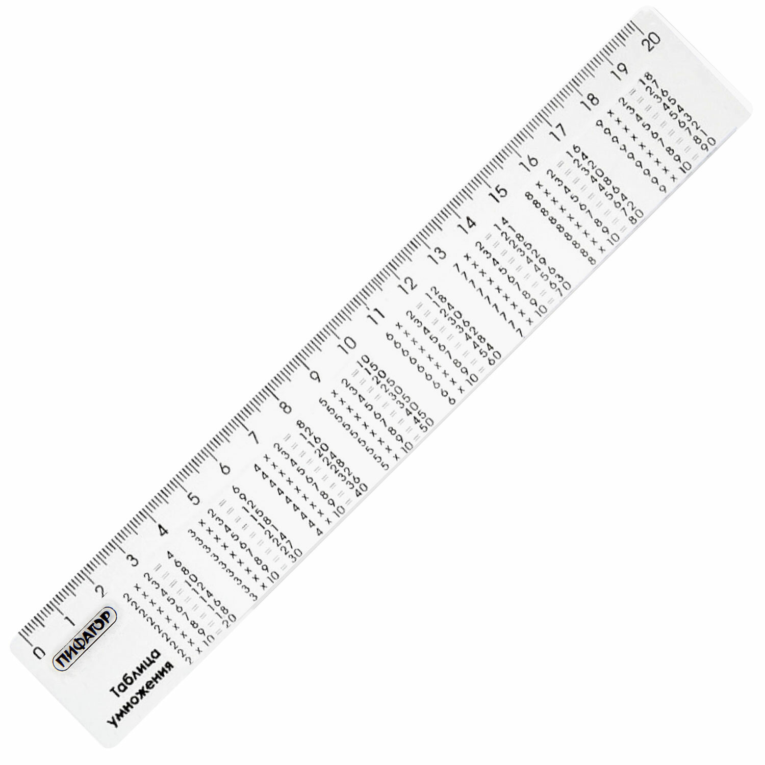 - Линейка пластик 20 см, ПИФАГОР, справочная, таблица умножения, 210616