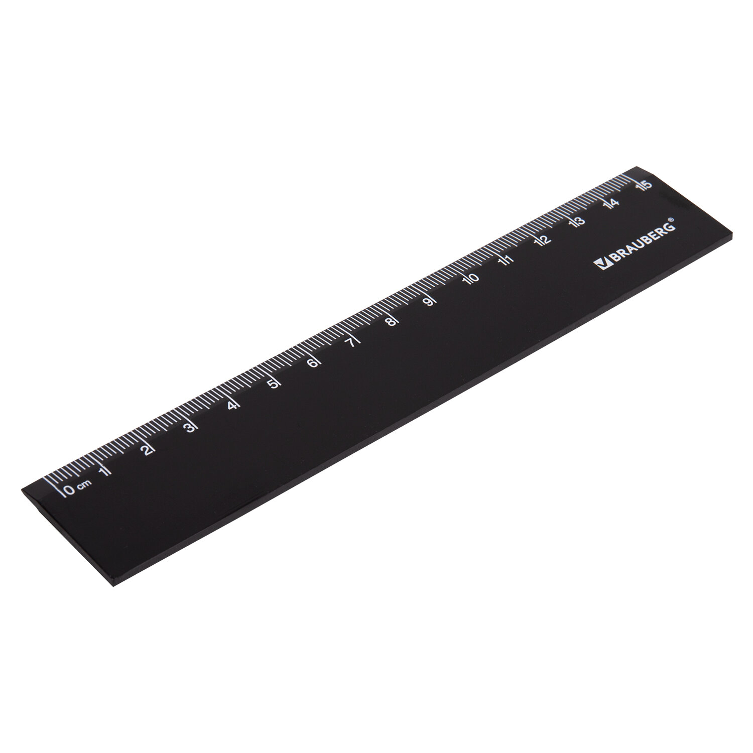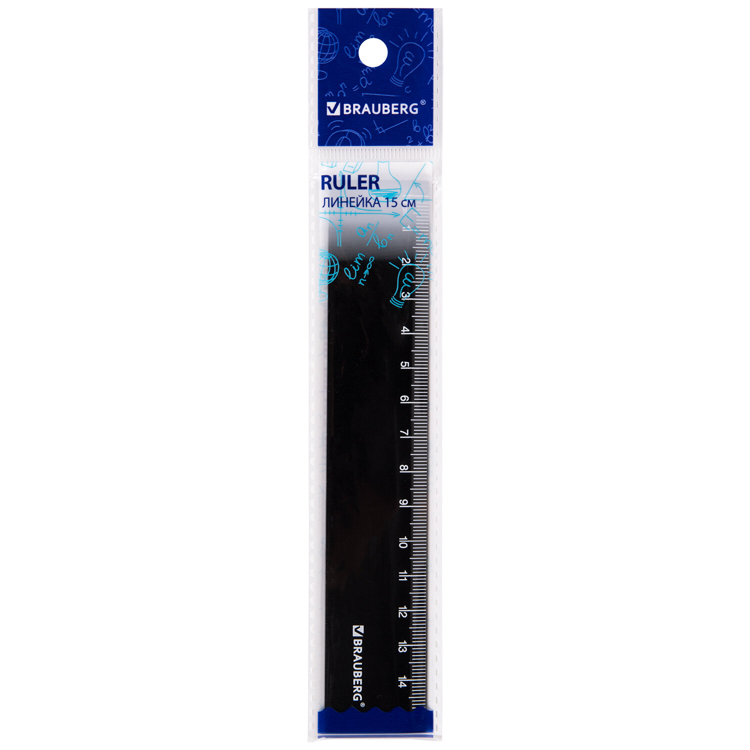- Линейка пластиковая 15 см, BRAUBERG, черная, пакет, 210774
