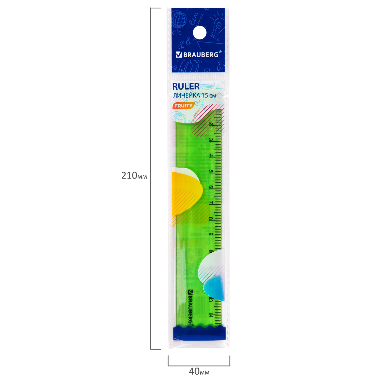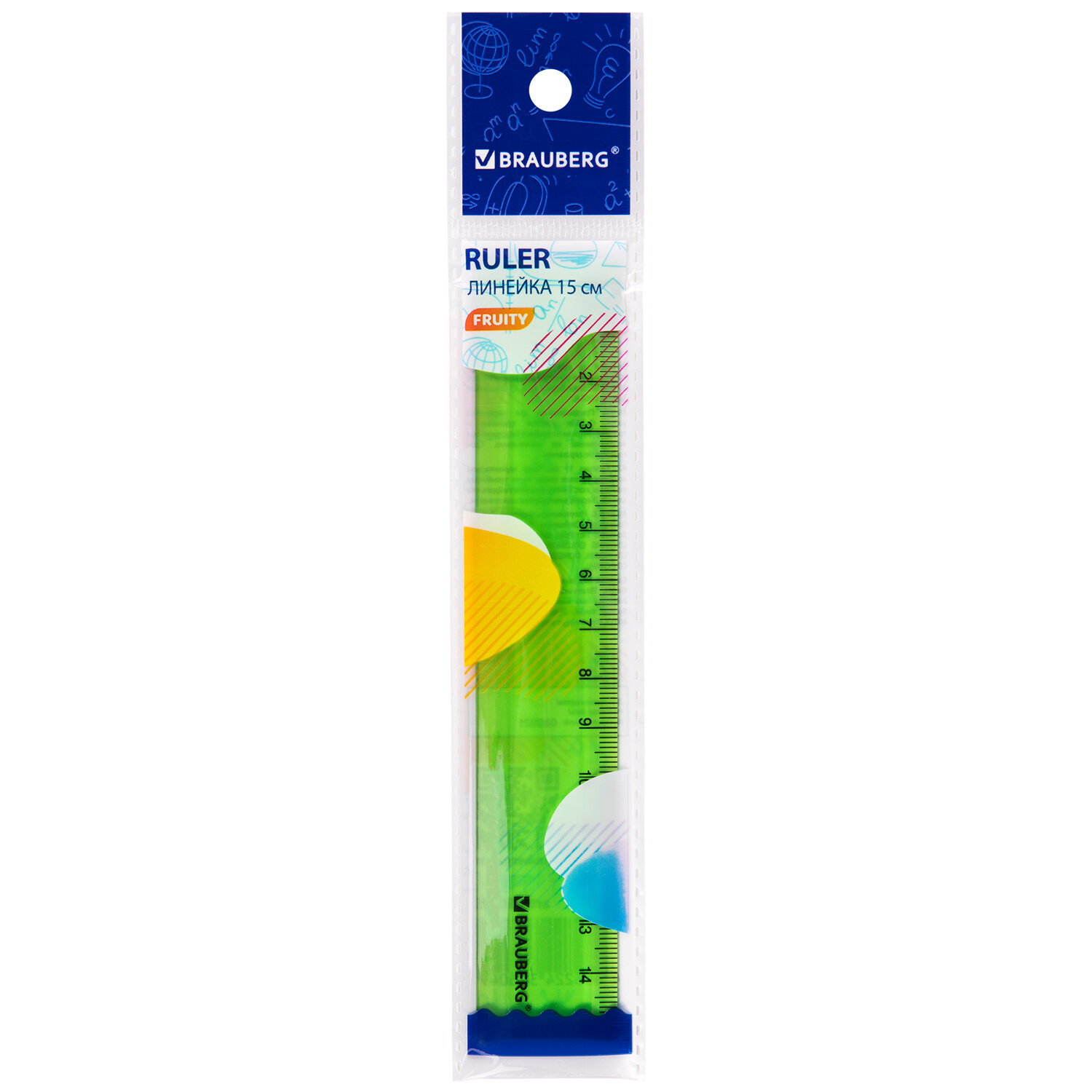 - Линейка пластиковая 15 см BRAUBERG "FRUITY", тонированная, ассорти, 210765