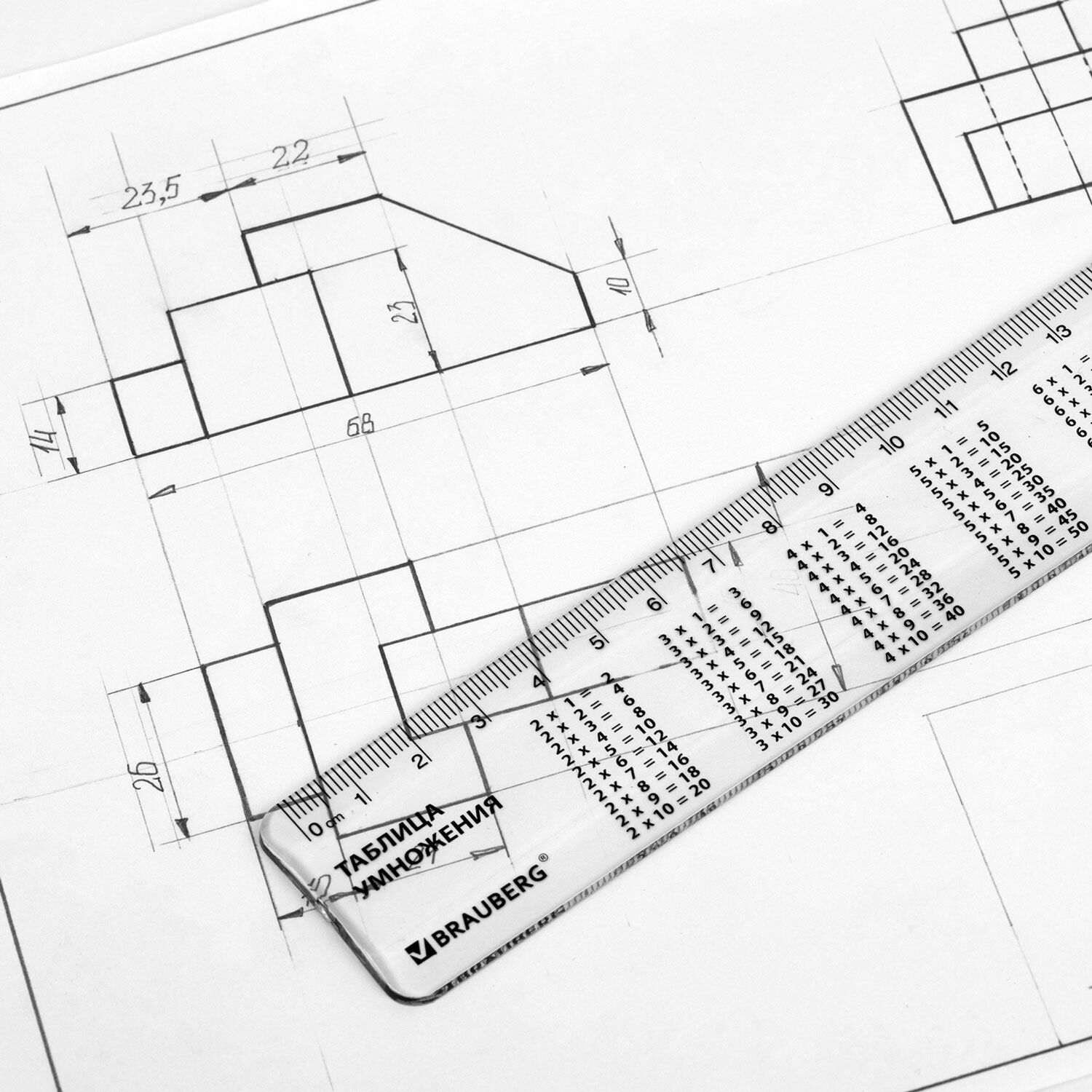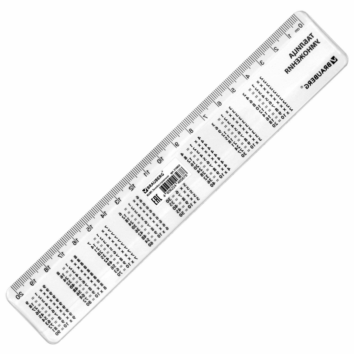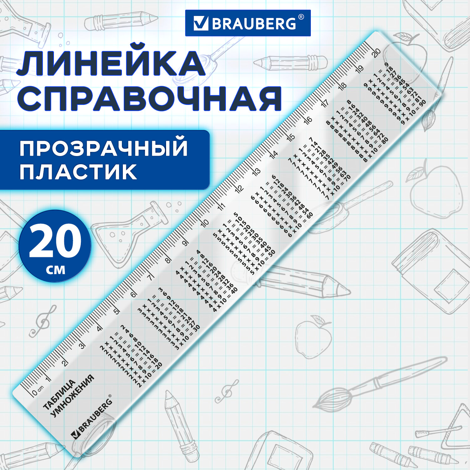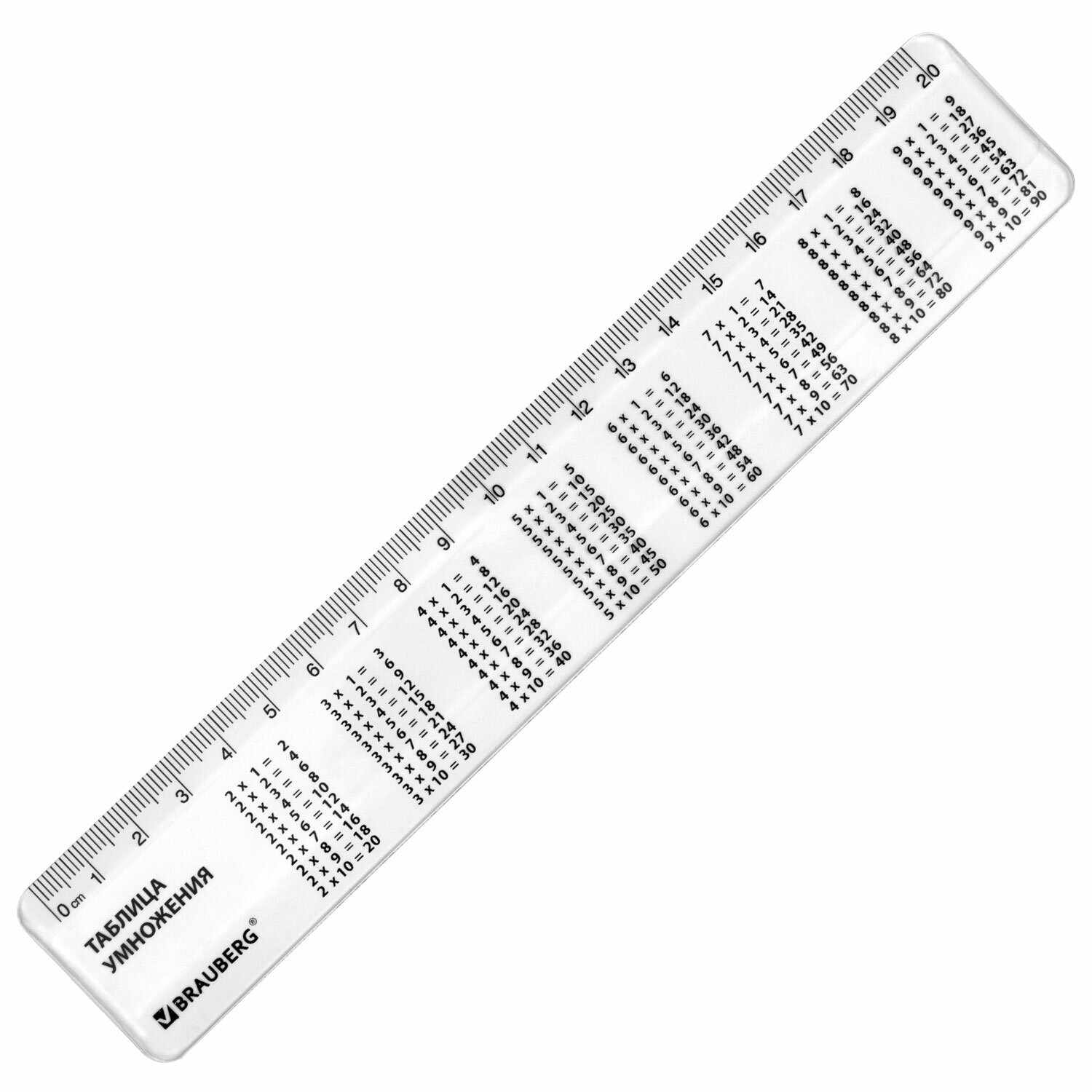 - Линейка пластиковая 20 см, BRAUBERG, справочная, таблица умножения, 210832