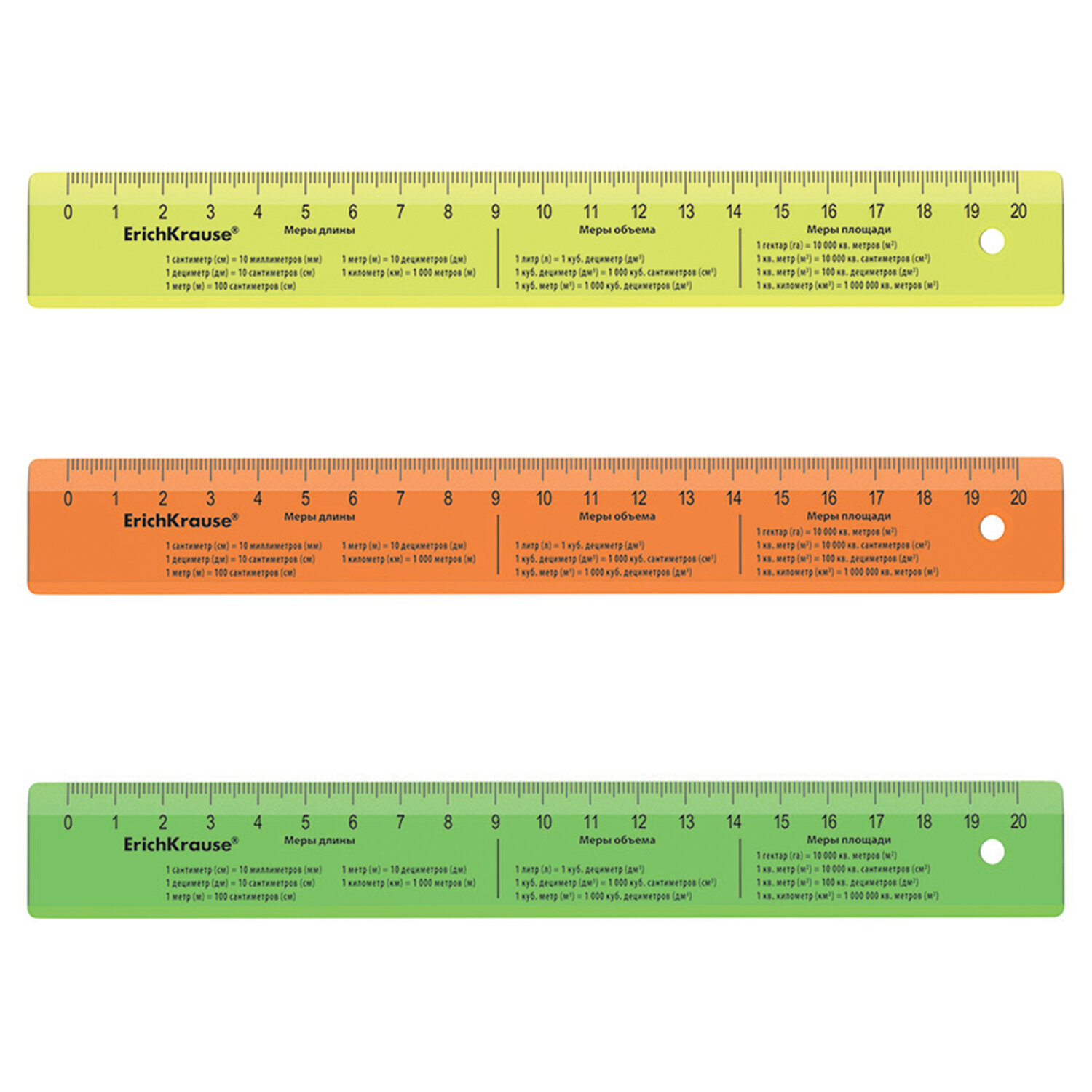 - Линейка пластиковая 20 см, ERICH KRAUSE "NEON", с единицами измерения, ассорти, 55502