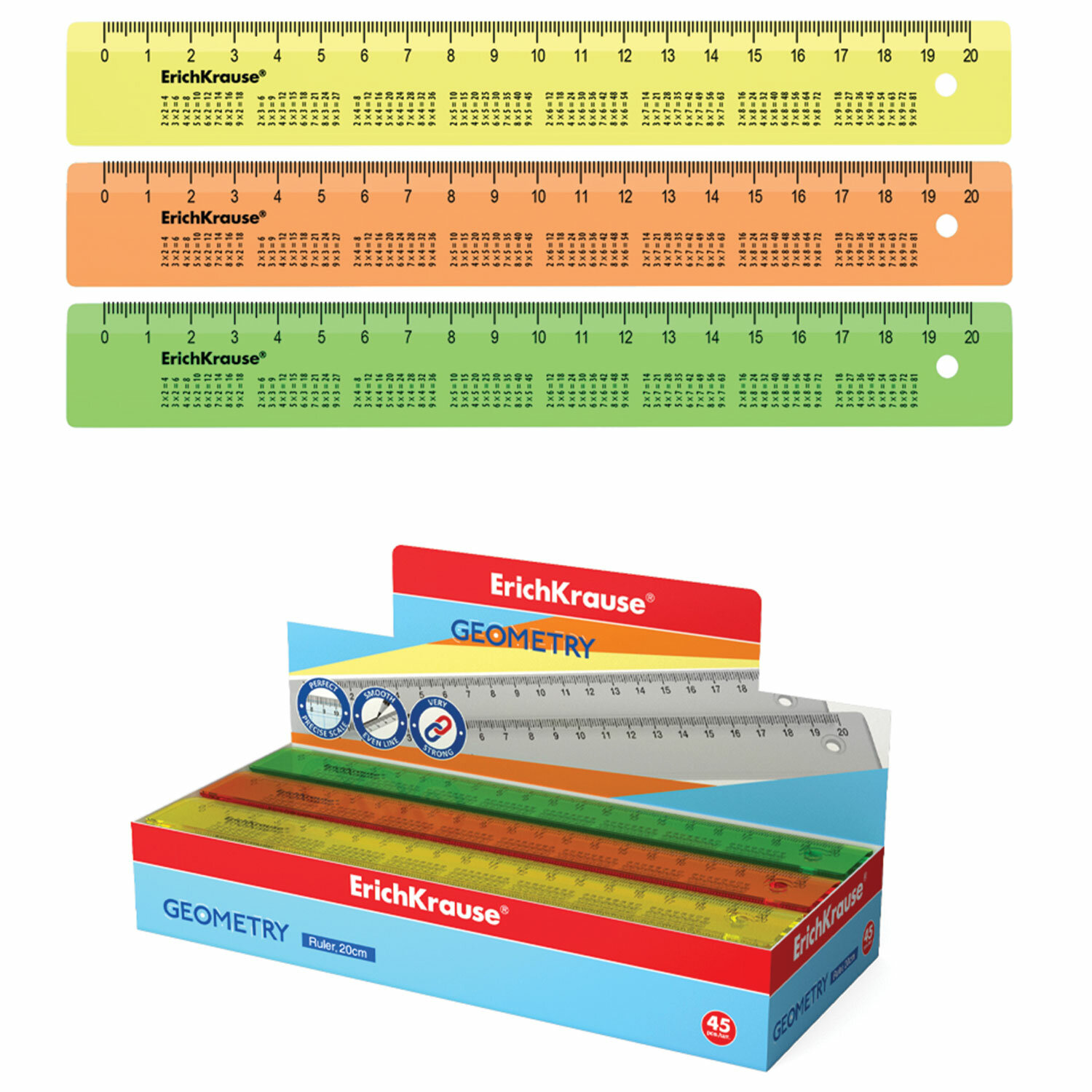- Линейка пластиковая 20 см, ERICH KRAUSE "NEON", с таблицей умножения, ассорти, 57851