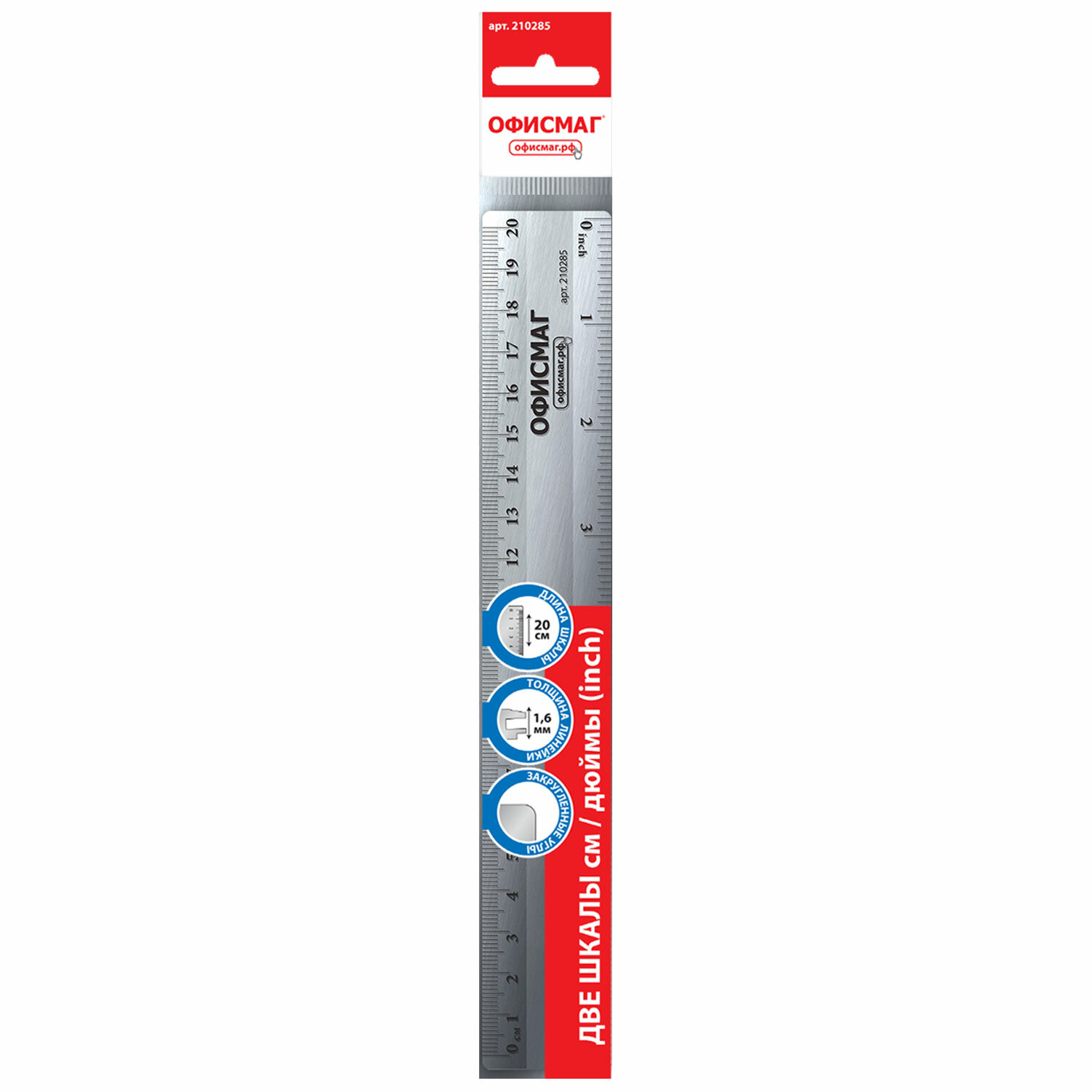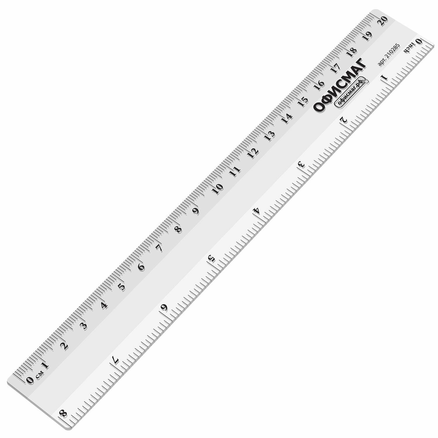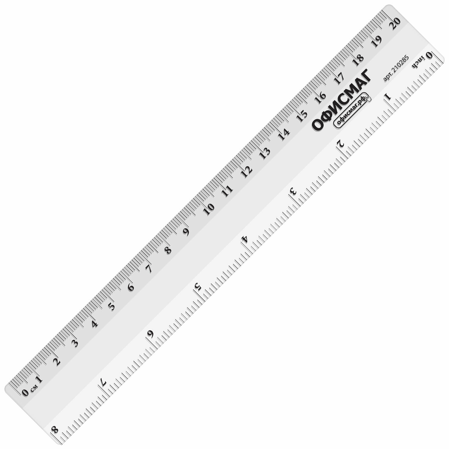 - Линейка пластиковая 20 см, ОФИСМАГ, прозрачная, европодвес, 210285