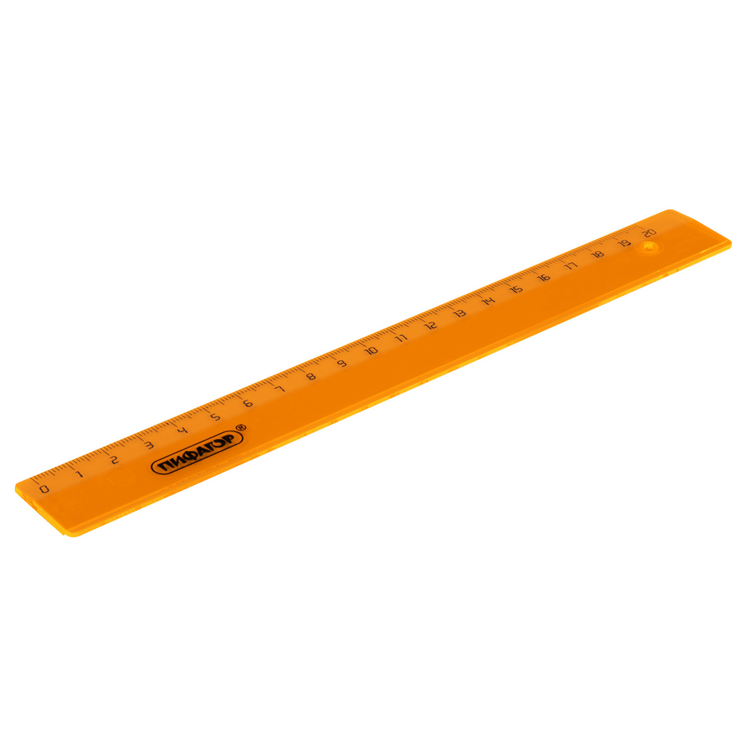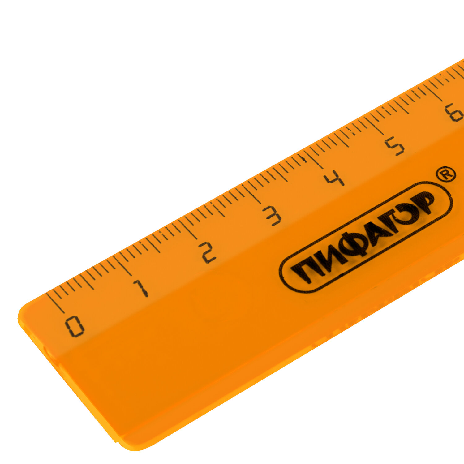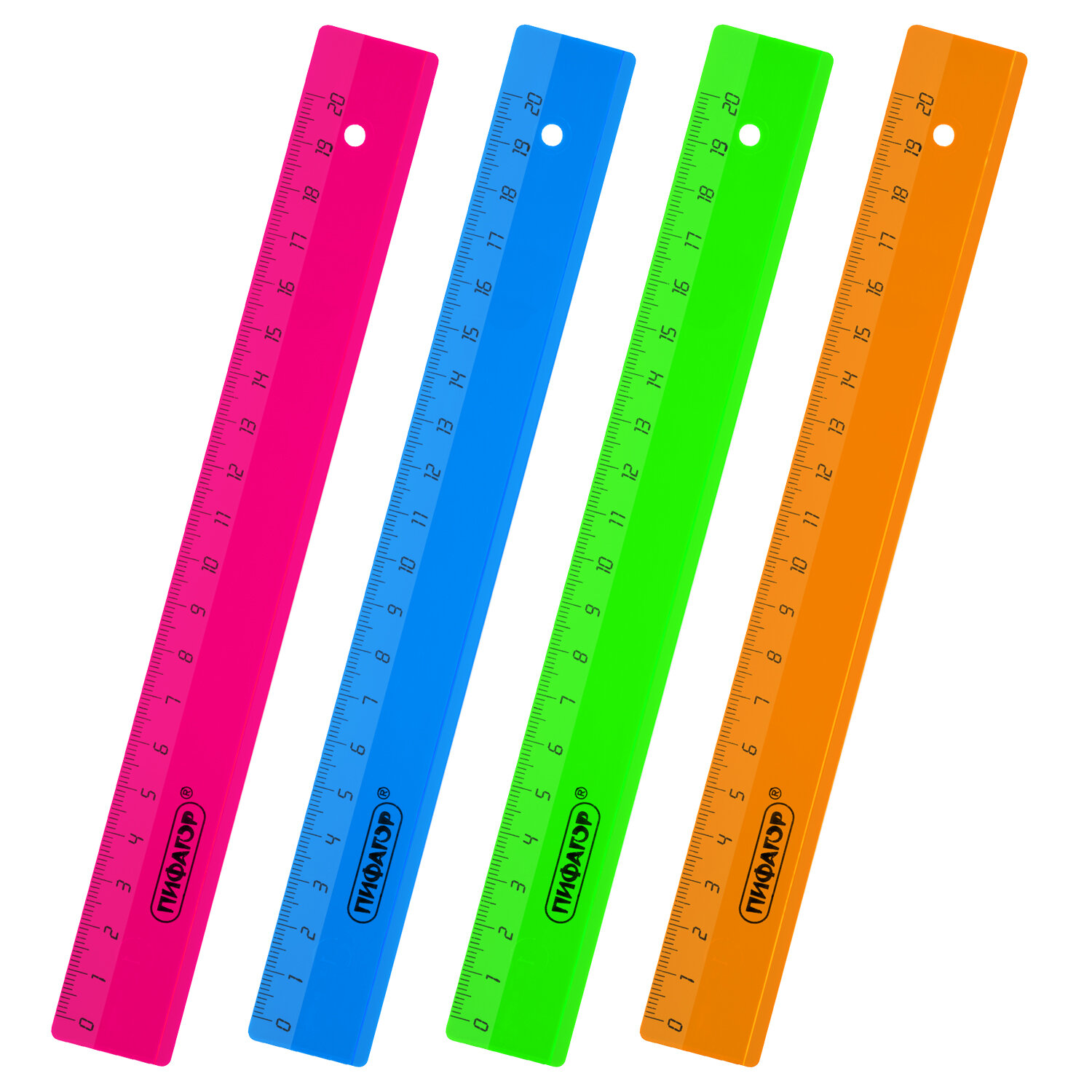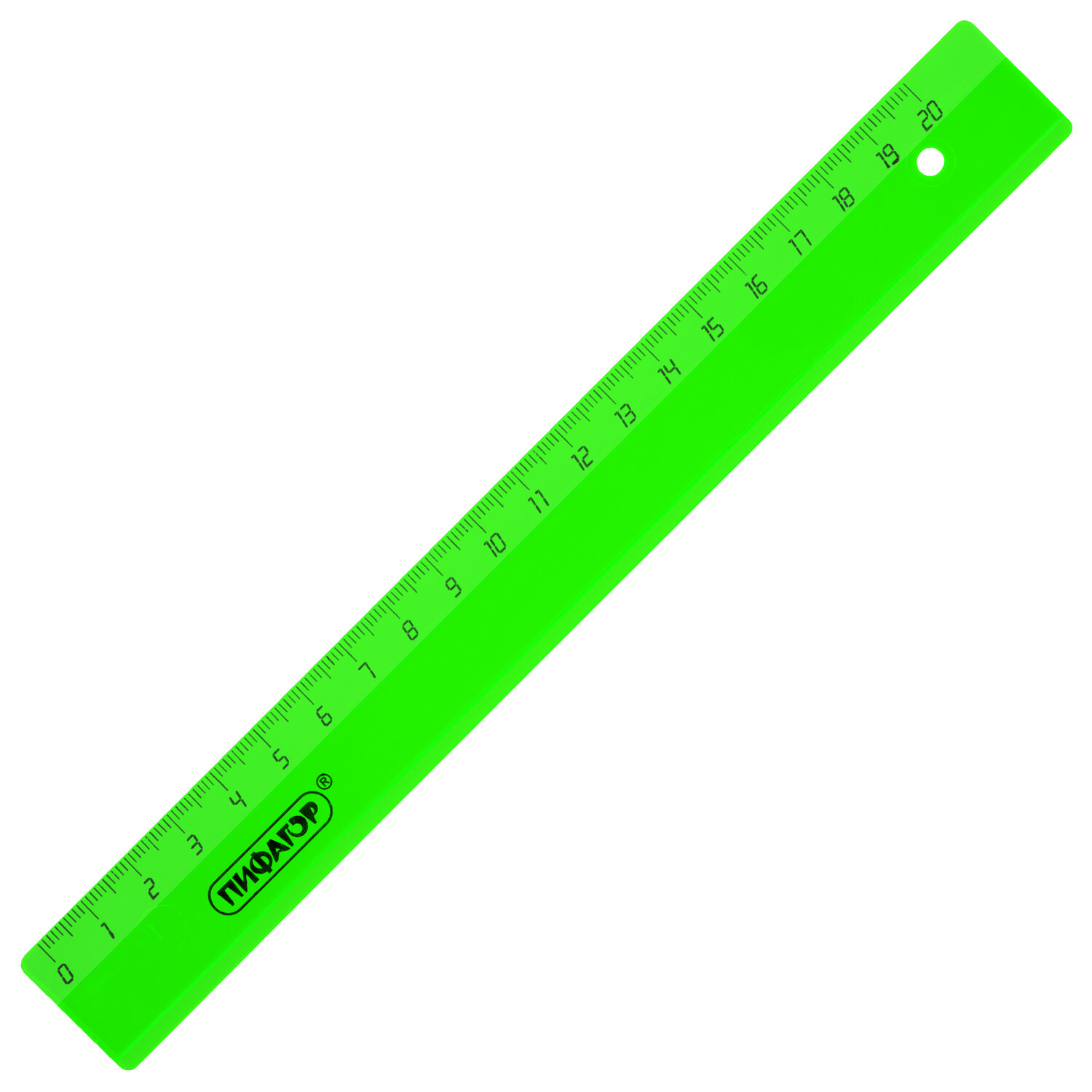 - Линейка пластиковая 20 см ПИФАГОР, прозрачная, неоновая, ассорти, 210789