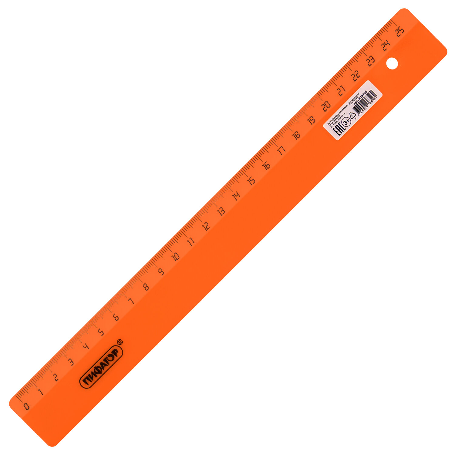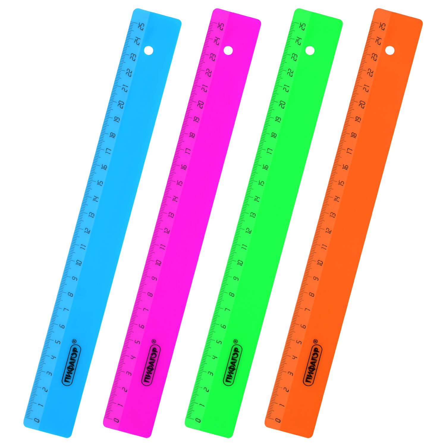 - Линейка пластиковая 25 см, ПИФАГОР, неоновая, ассорти, 210790