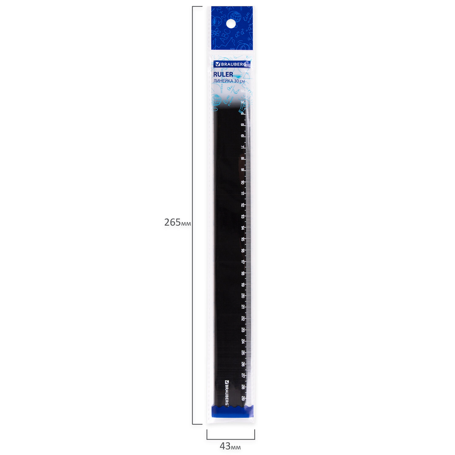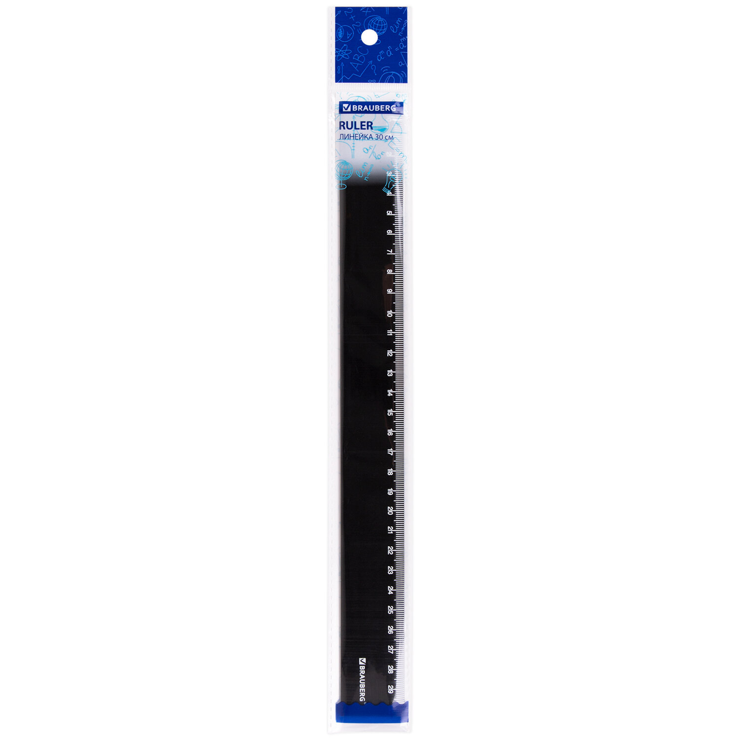 - Линейка пластиковая 30 см, BRAUBERG, черная, пакет, 210776