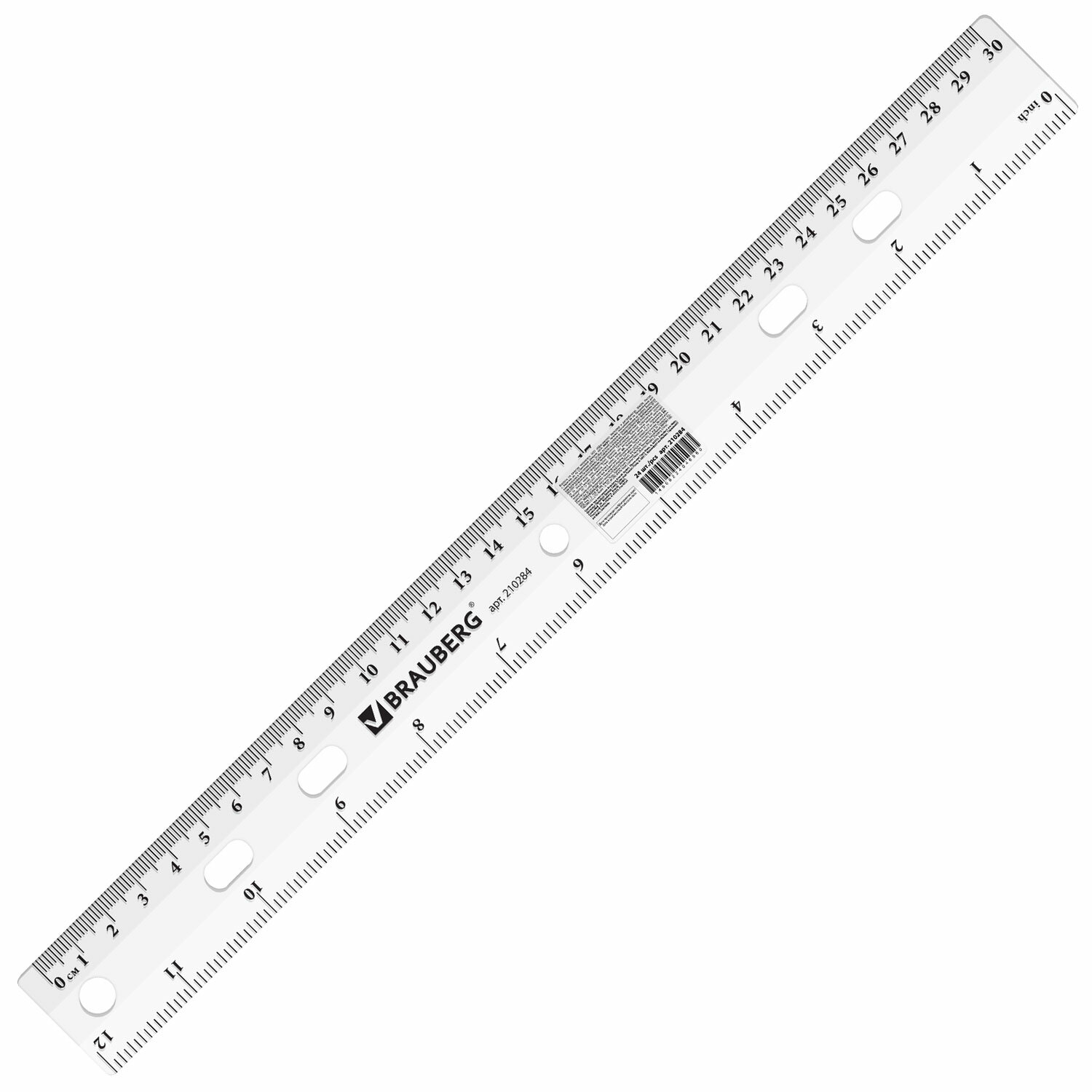 - Линейка пластиковая 30 см, BRAUBERG "Crystal", прозрачная, 210284