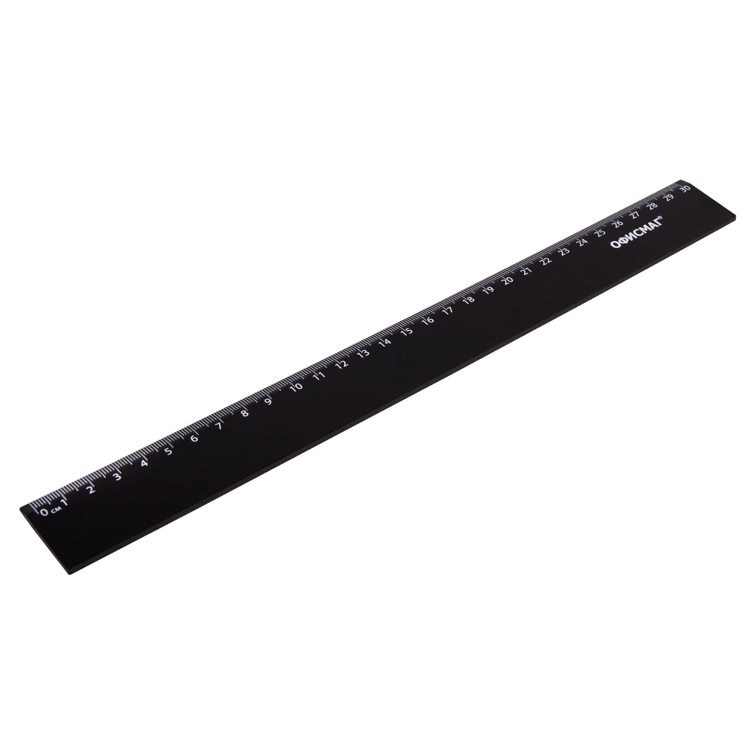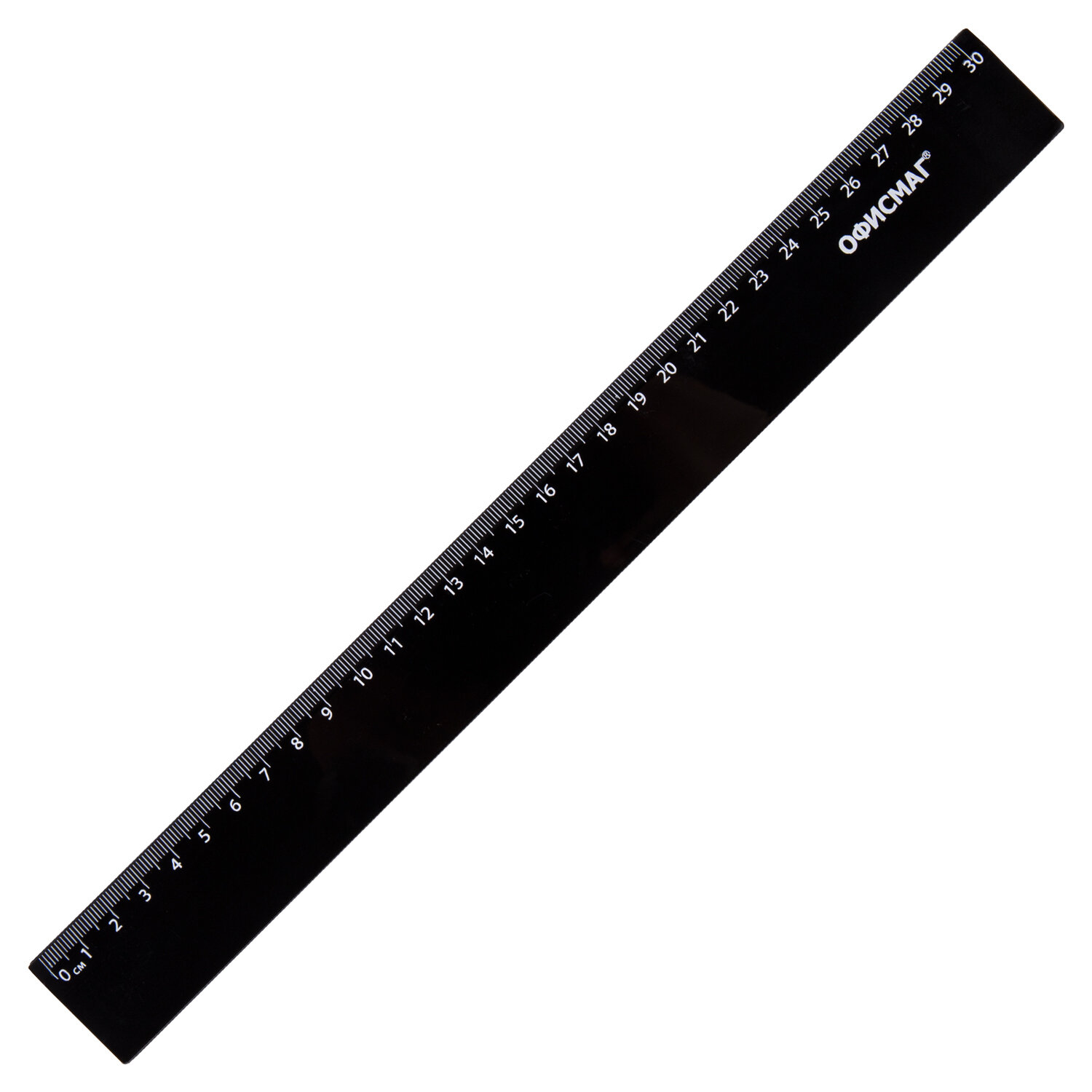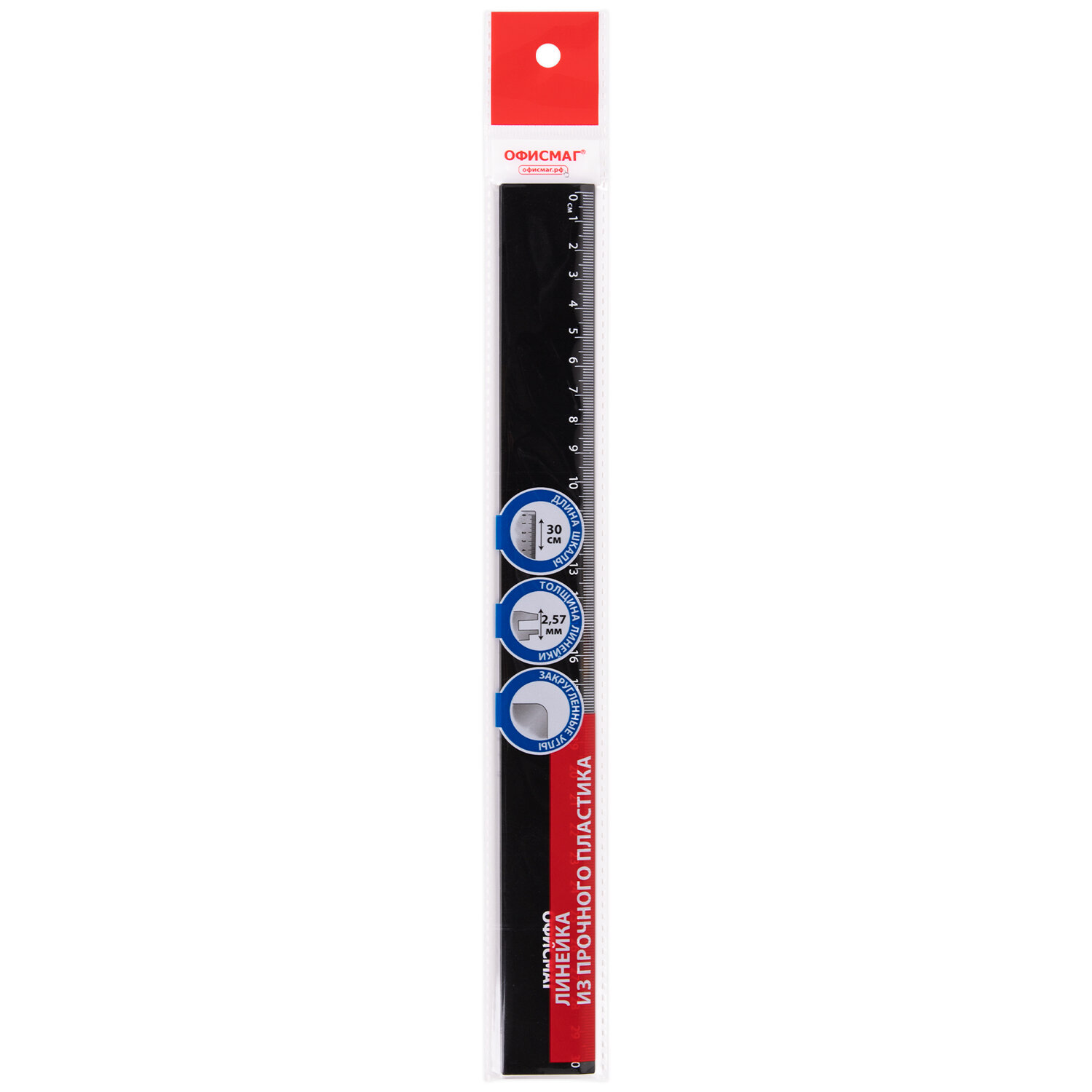 - Линейка пластиковая 30 см, ОФИСМАГ, черная, пакет, 210778