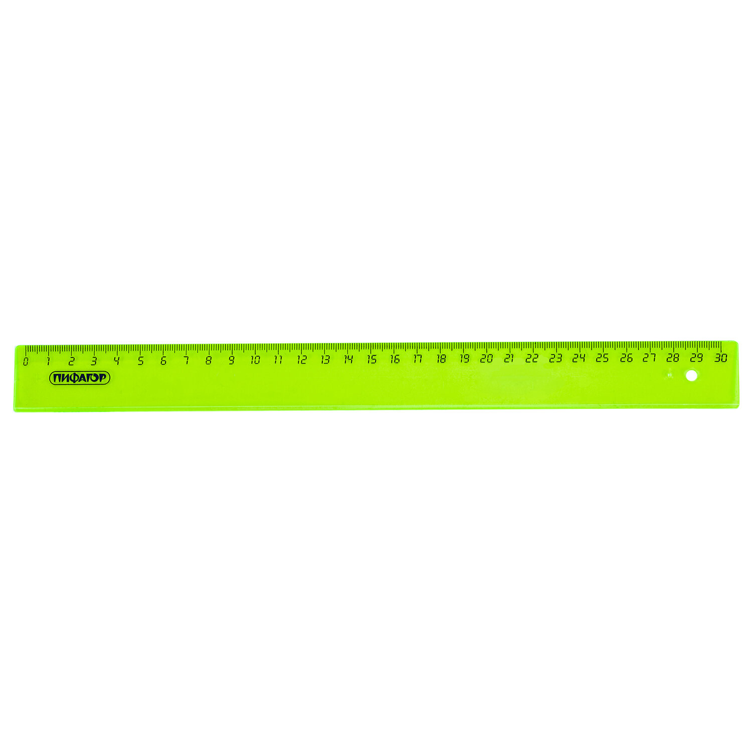 Линейка пластиковая 30 см, ПИФАГОР, прозрачная, неоновая, ассорти, 210609