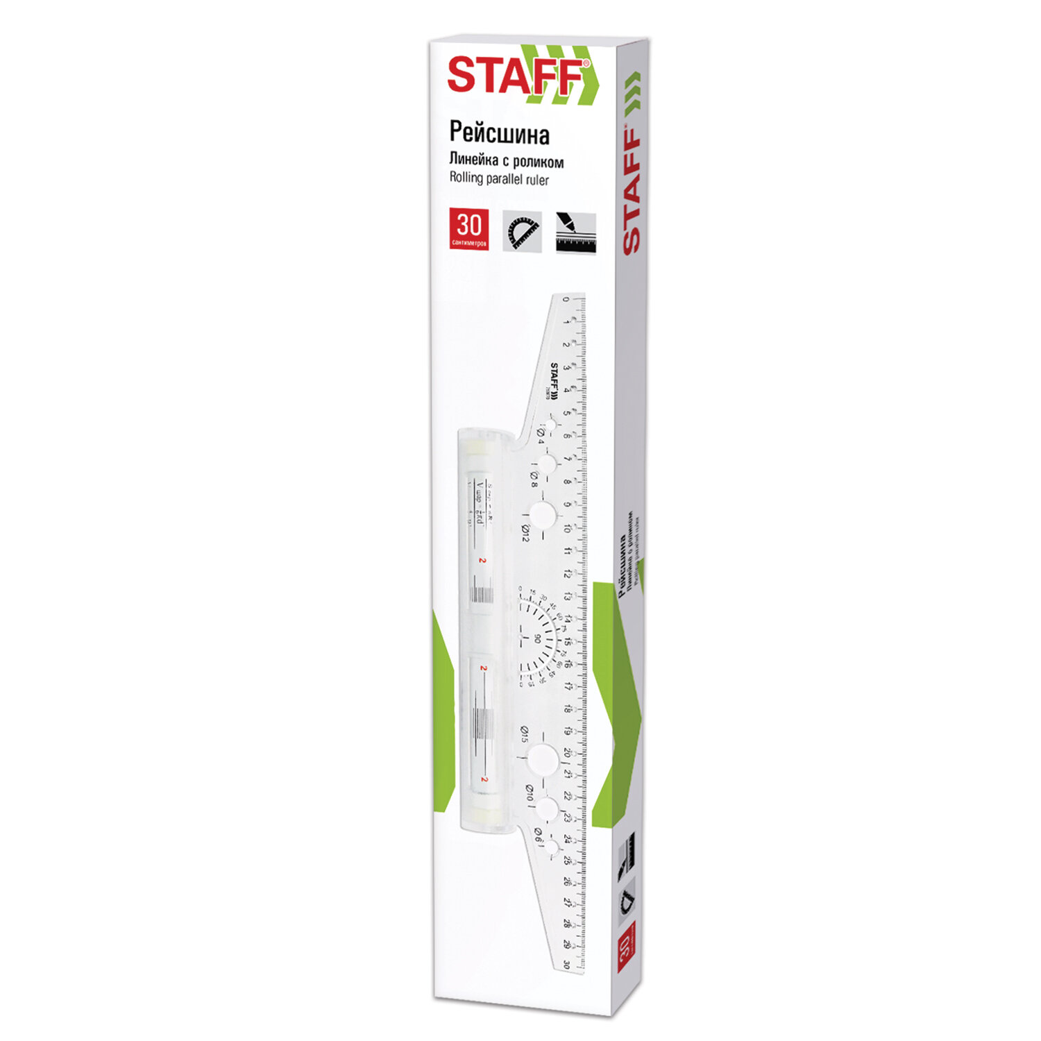 - Линейка с роликом (рейсшина) 30 см, металлический ролик, картонная коробка, STAFF, 210870