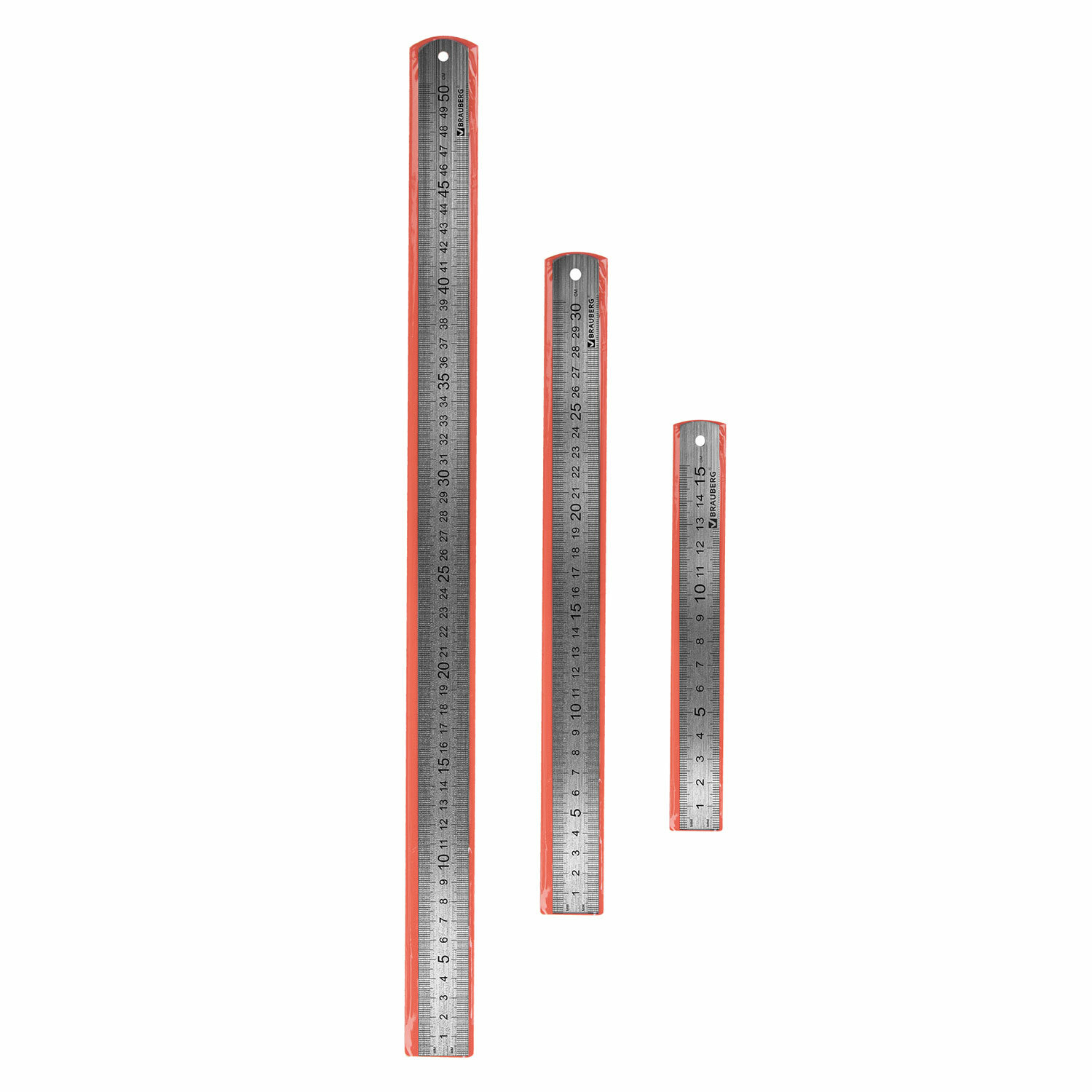 - Линейки металлические КОМПЛЕКТ 3 шт. (15 см, 30 см, 50 см), BRAUBERG, 210810
