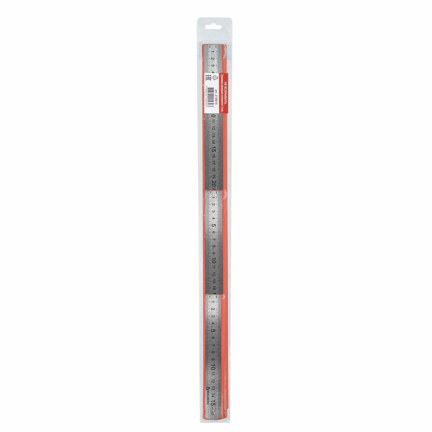 Линейки изготовлены из высококачественной пружинистой стали. Обладают четкой разметкой, что делает их удобными в использовании. Имеют двойную градацию шкалы (сантиметр, дюйм). Устойчивы к деформации. Отлично подходят школьникам и студентам для измерения, черчения и рисования. Набор состоит из 3 линеек разной длины – 15 см, 30 см, 50 см. Линейки металлические КОМПЛЕКТ 3 шт. (15 см, 30 см, 50 см), BRAUBERG, 210810