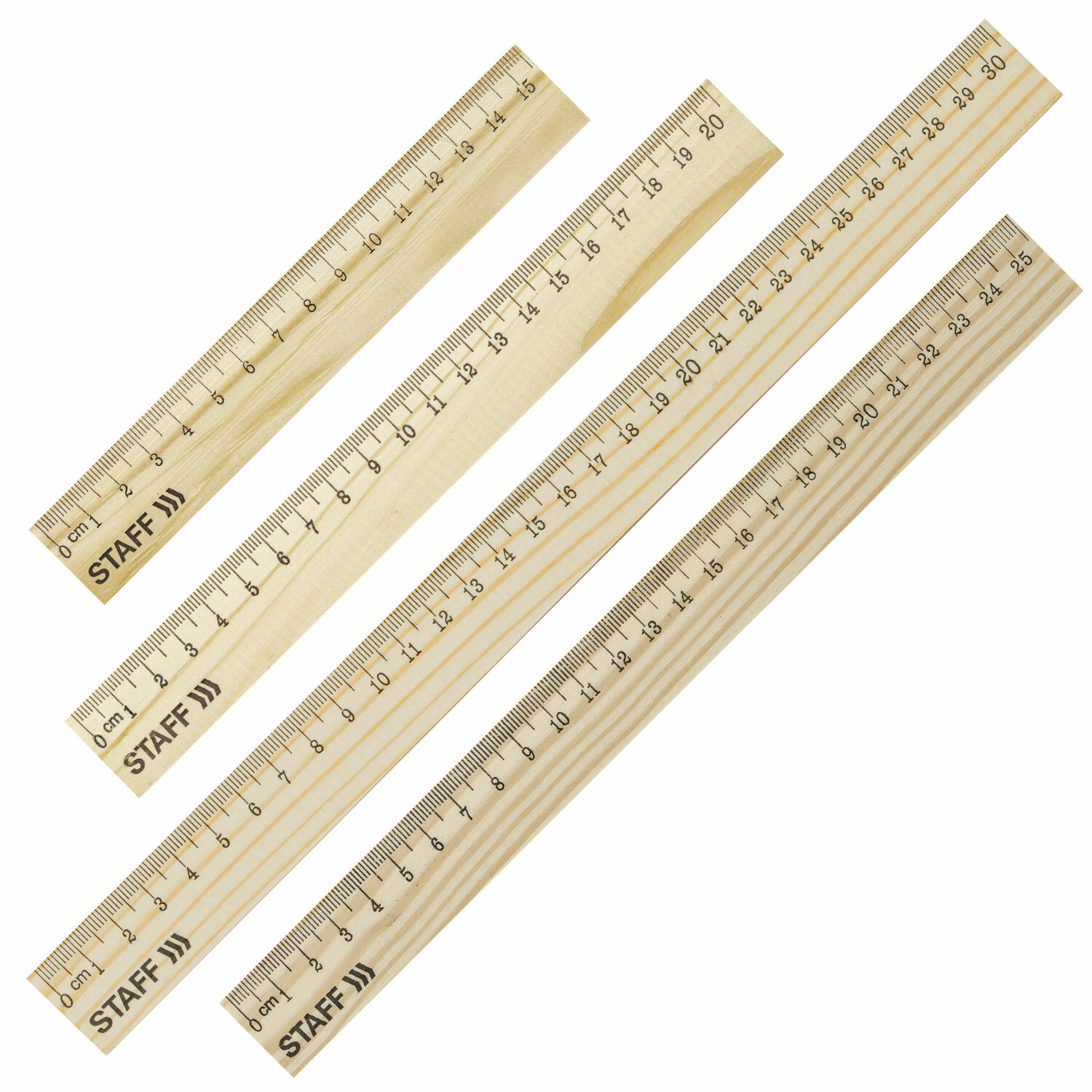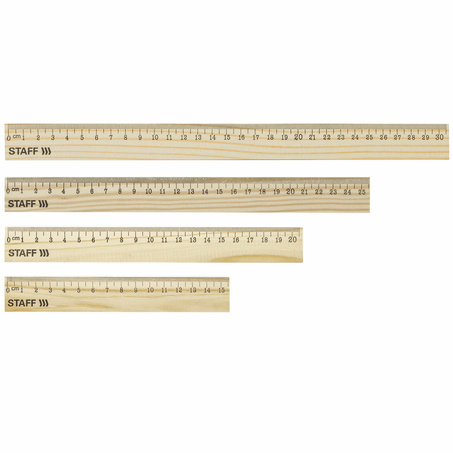 - Набор деревянных линеек STAFF, 15 см, 20 см, 25 см, 30 см, канадская сосна, 210803