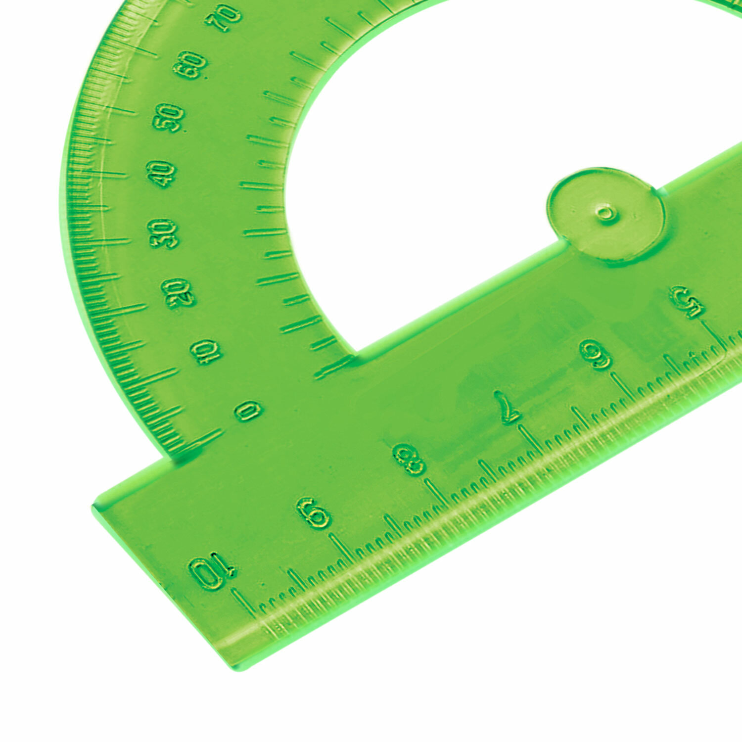 Изготовлен из прочного прозрачного пластика толщиной 2 мм. Длина разметки линейки составляет 10 см, шкала транспортира - 180°. Отверстие для карандаша позволяет точно находить центр и вычерчивать окружность 360°. Обладает контрастной отливной миллиметровой разметкой. Размер - 6,6х11 см. Цвет - ассорти. Поставляется без упаковки. Транспортир пластик 10 см, 180 градусов, BRAUBERG, прозрачный, неоновый, ассорти, 210620