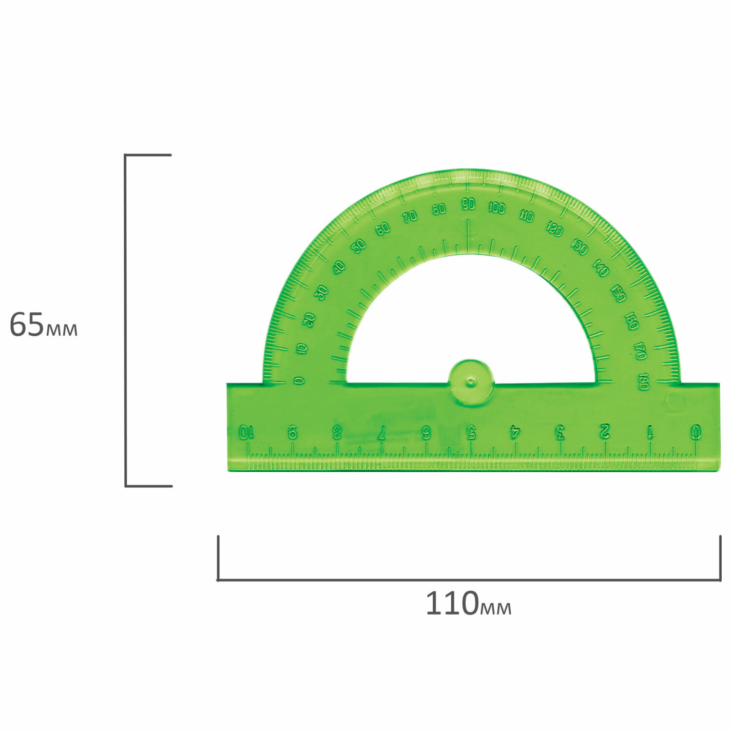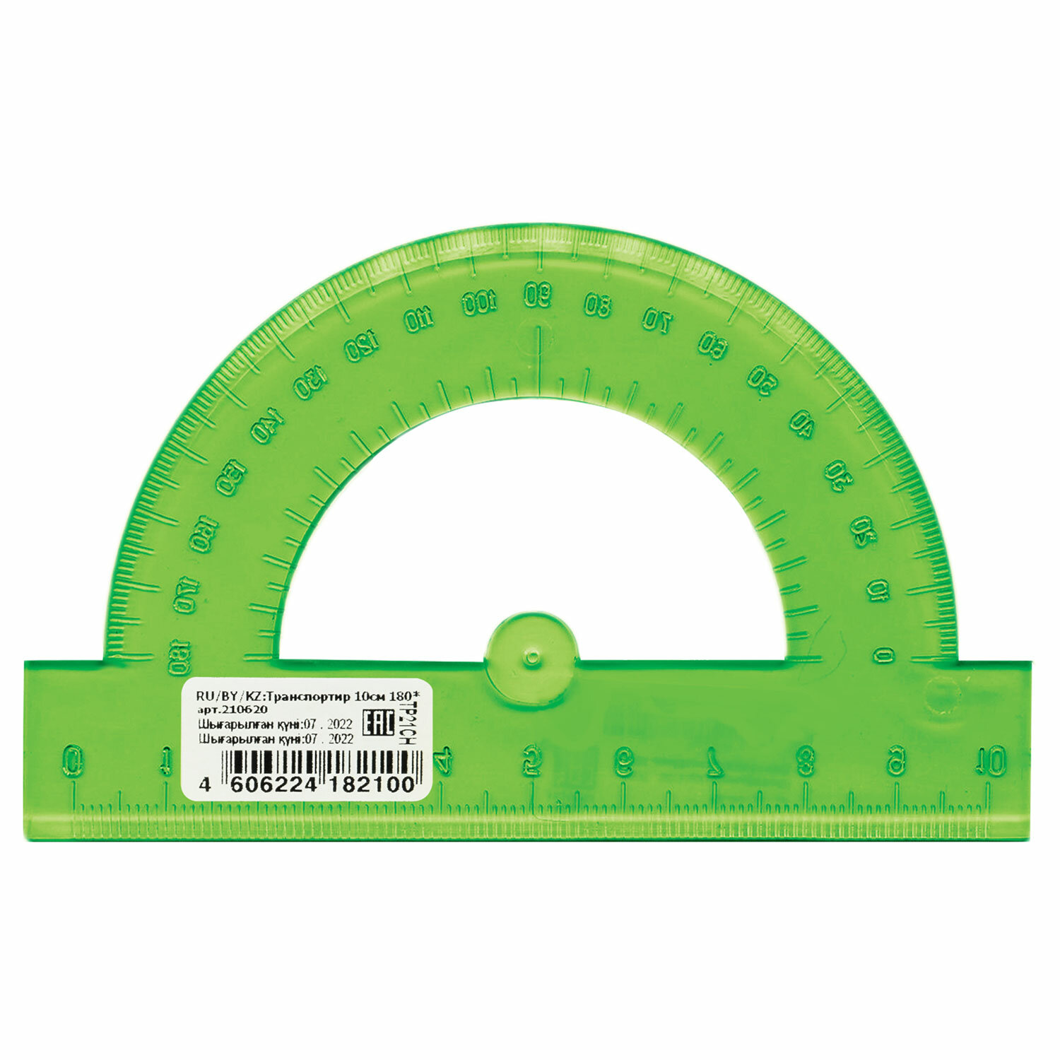 - Транспортир пластик 10 см, 180 градусов, BRAUBERG, прозрачный, неоновый, ассорти, 210620