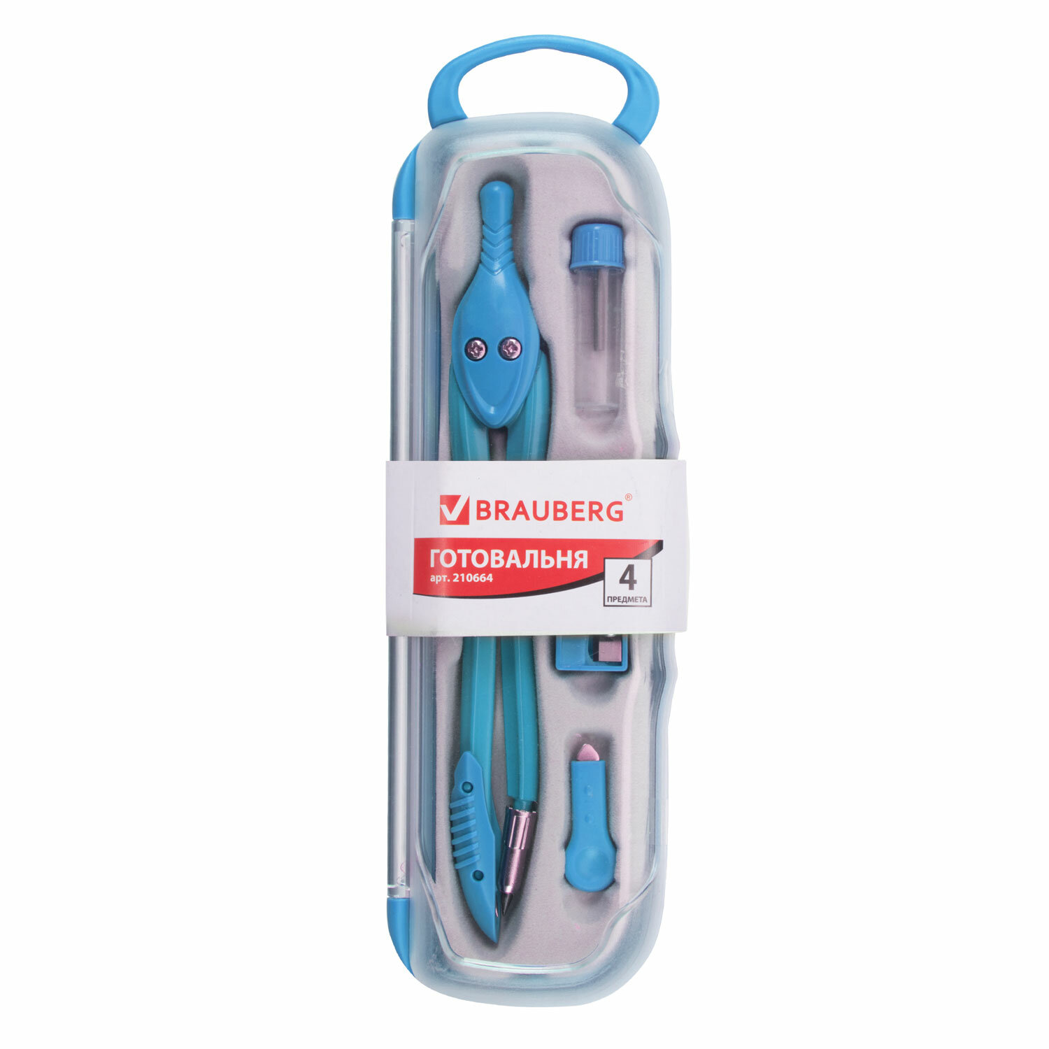 - Готовальня BRAUBERG "Modern", 4 предмета: циркуль 135 мм, точилка, отвёртка, грифель, 210664