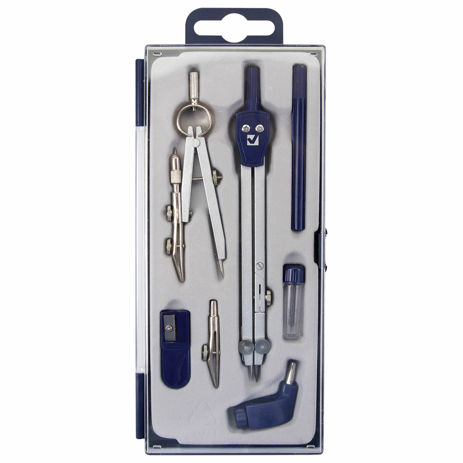 Поставляется в пластиковом пенале с прозрачной крышкой и с европодвесом. Готовальня BRAUBERG "Student Oxford", 7 предметов: наполнение-1, пенал с подвесом, 210347