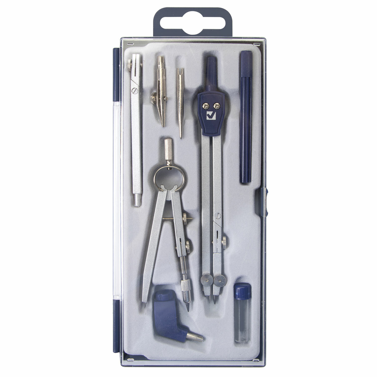 Поставляется в пластиковом пенале с прозрачной крышкой и с европодвесом. Готовальня BRAUBERG "Student Oxford", 8 предметов: наполнение-1, пенал с подвесом, 210350