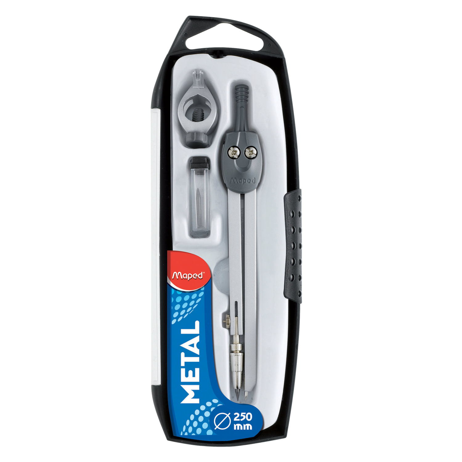 В комплекте: циркуль с грифелем, насадка с универсальным держателем и запасной грифель. Готовальня MAPED (Франция) "Start", 3 предмета, ударопрочный пенал с европодвесом, 197512