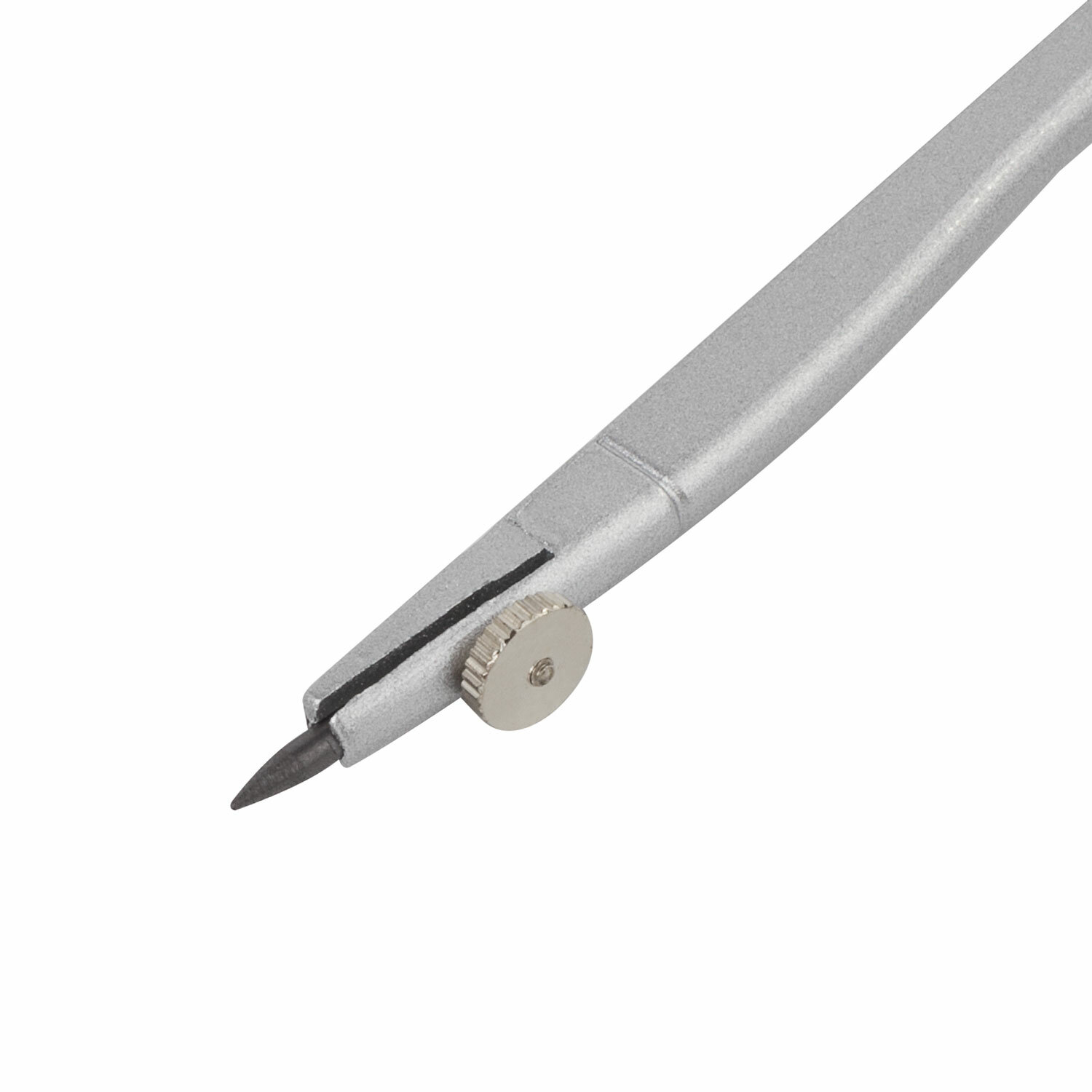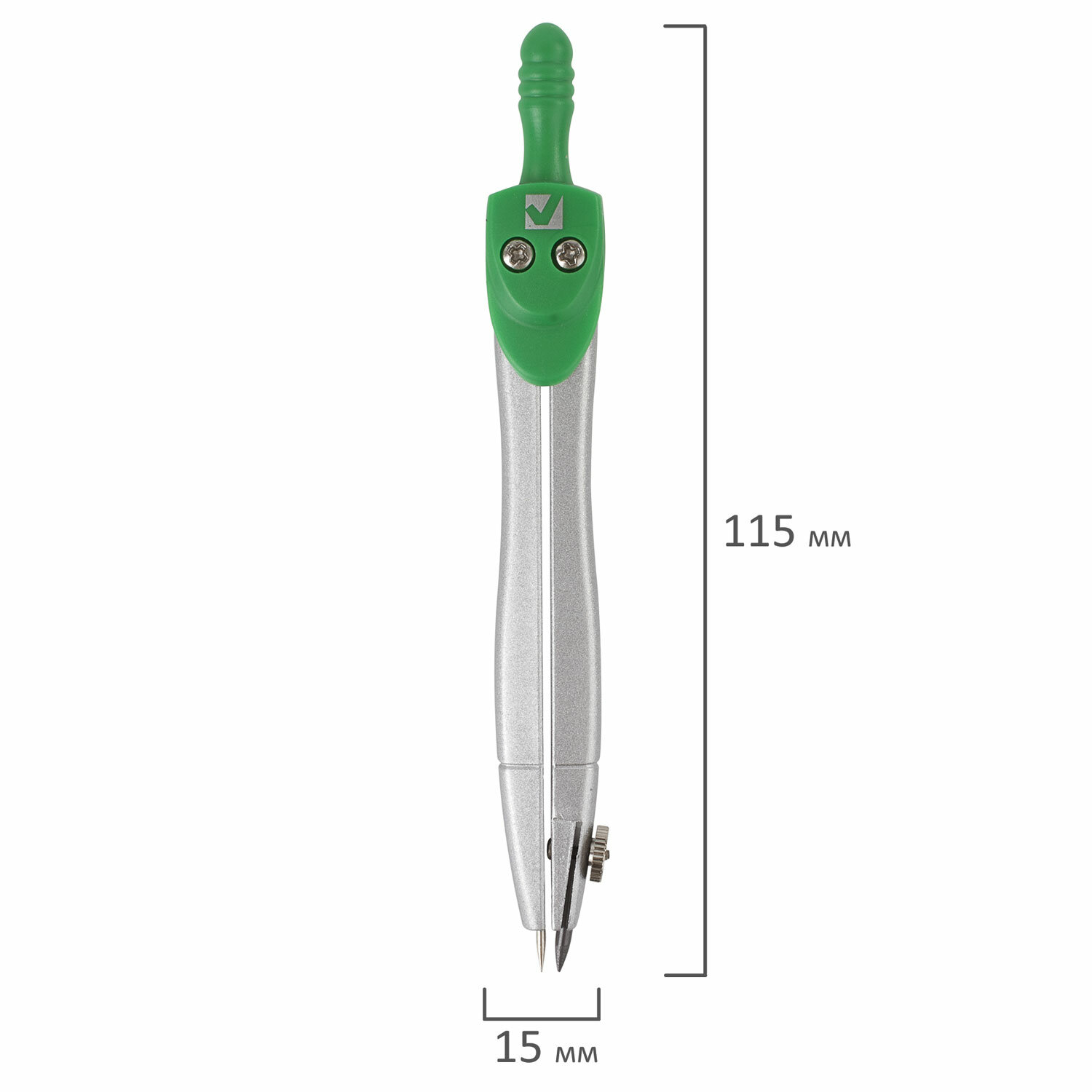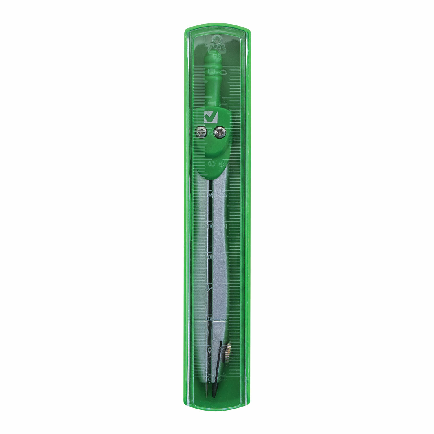 Инструмент длиной 115 мм имеет несгибаемые штанги. Изготовлен из металла, дополнительный цвет - зеленый. Поставляется в пластиковом пенале с прозрачной крышкой-линейкой. Циркуль BRAUBERG "Klasse", 115 мм, пластиковый пенал, 210313