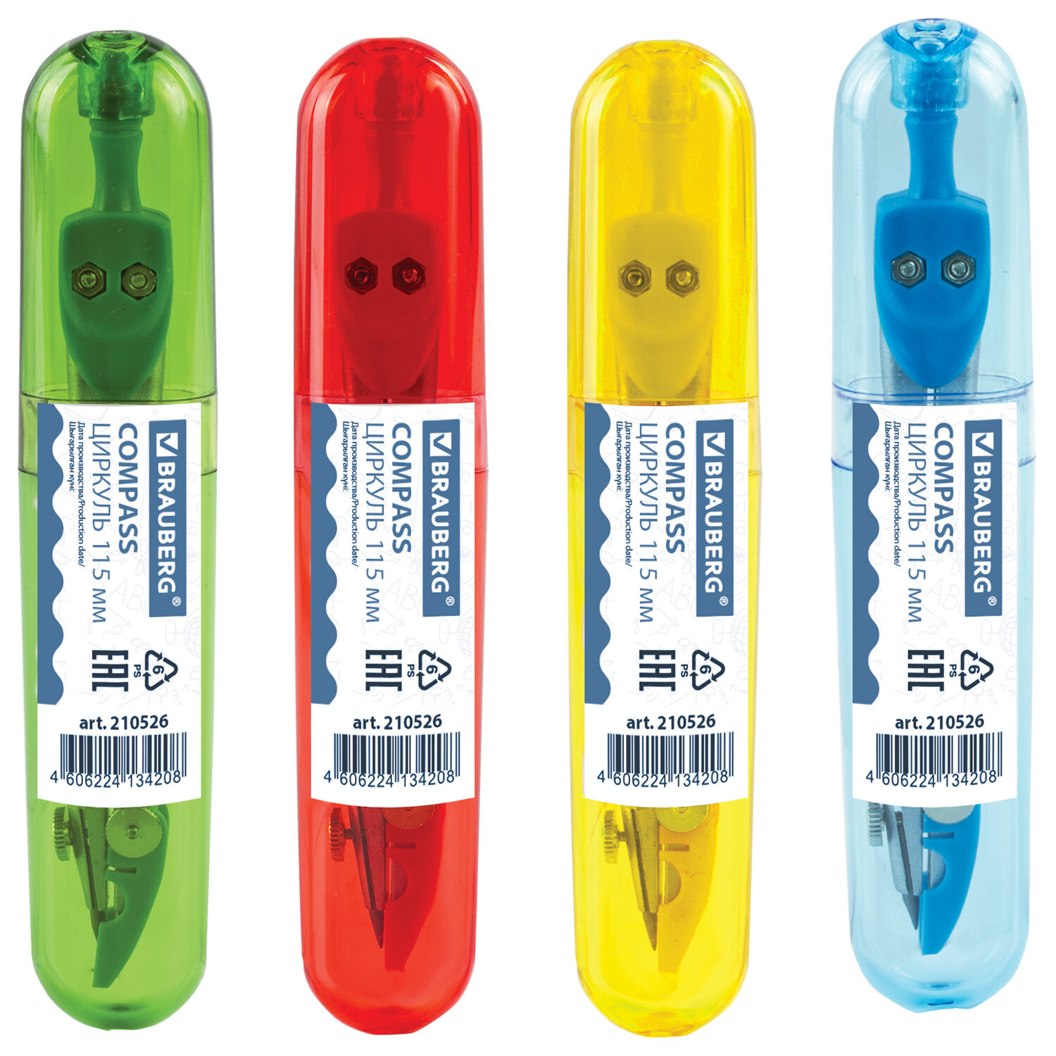 Циркуль BRAUBERG "Klasse", 115 мм, пластиковый пенал, ассорти, дисплей, 210526