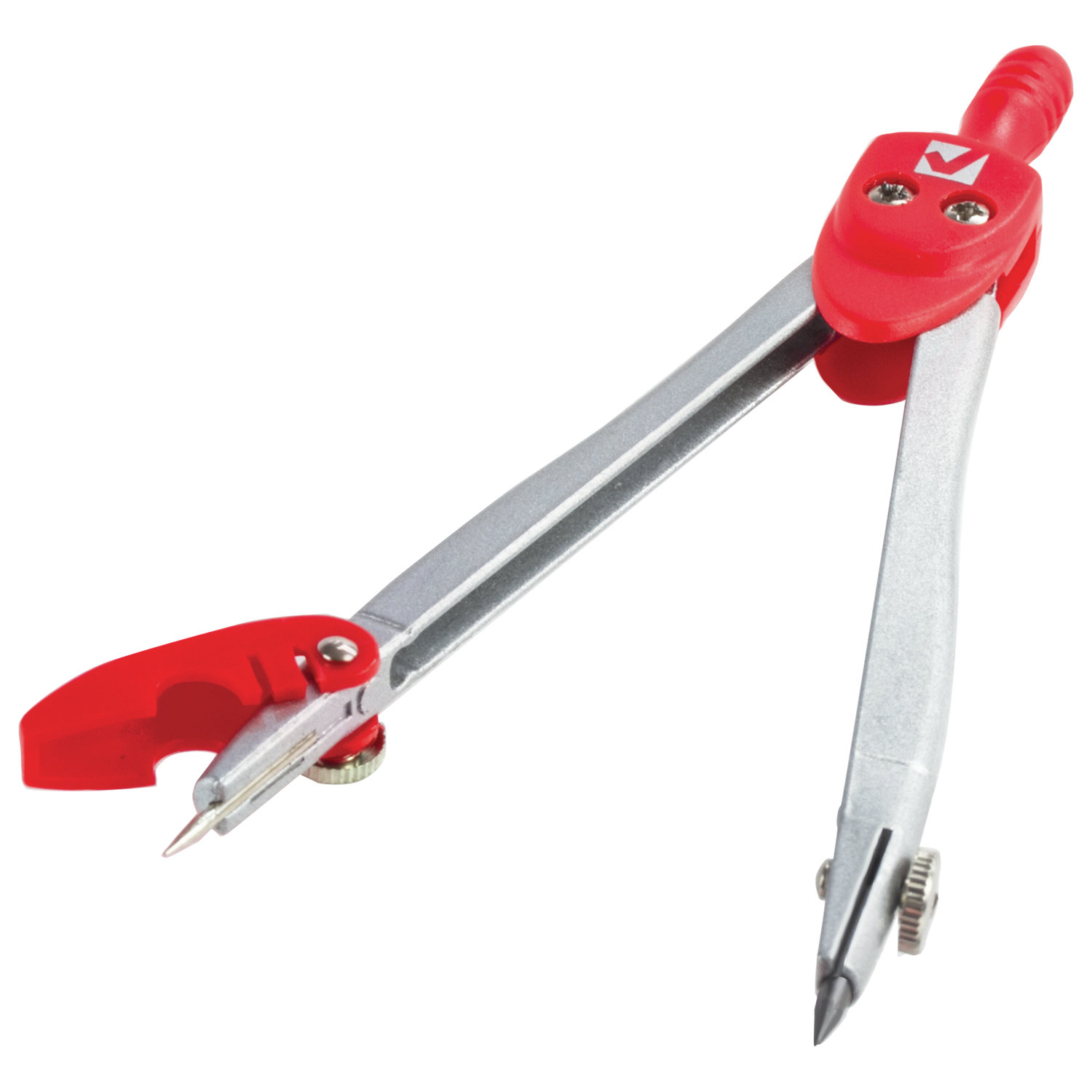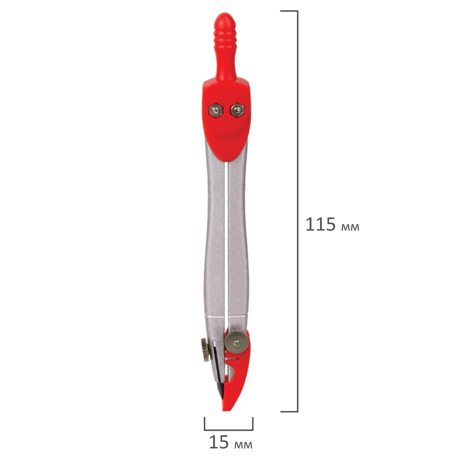 Инструмент длиной 115 мм имеет несгибаемые штанги и подстраиваемый грифель. Циркуль максимально безопасен при использовании и переноске благодаря наличию пластикового колпачка, который закрывает иглу.