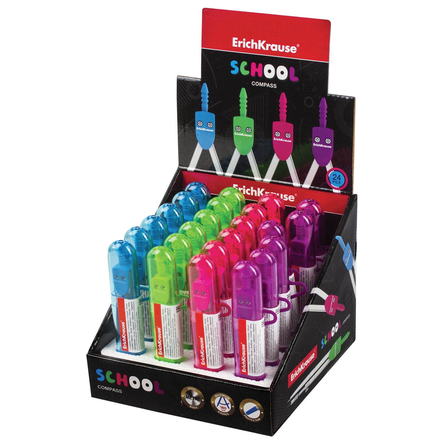 - Циркуль ERICH KRAUSE "School", 120 мм, туба, ассорти, дисплей, 31526