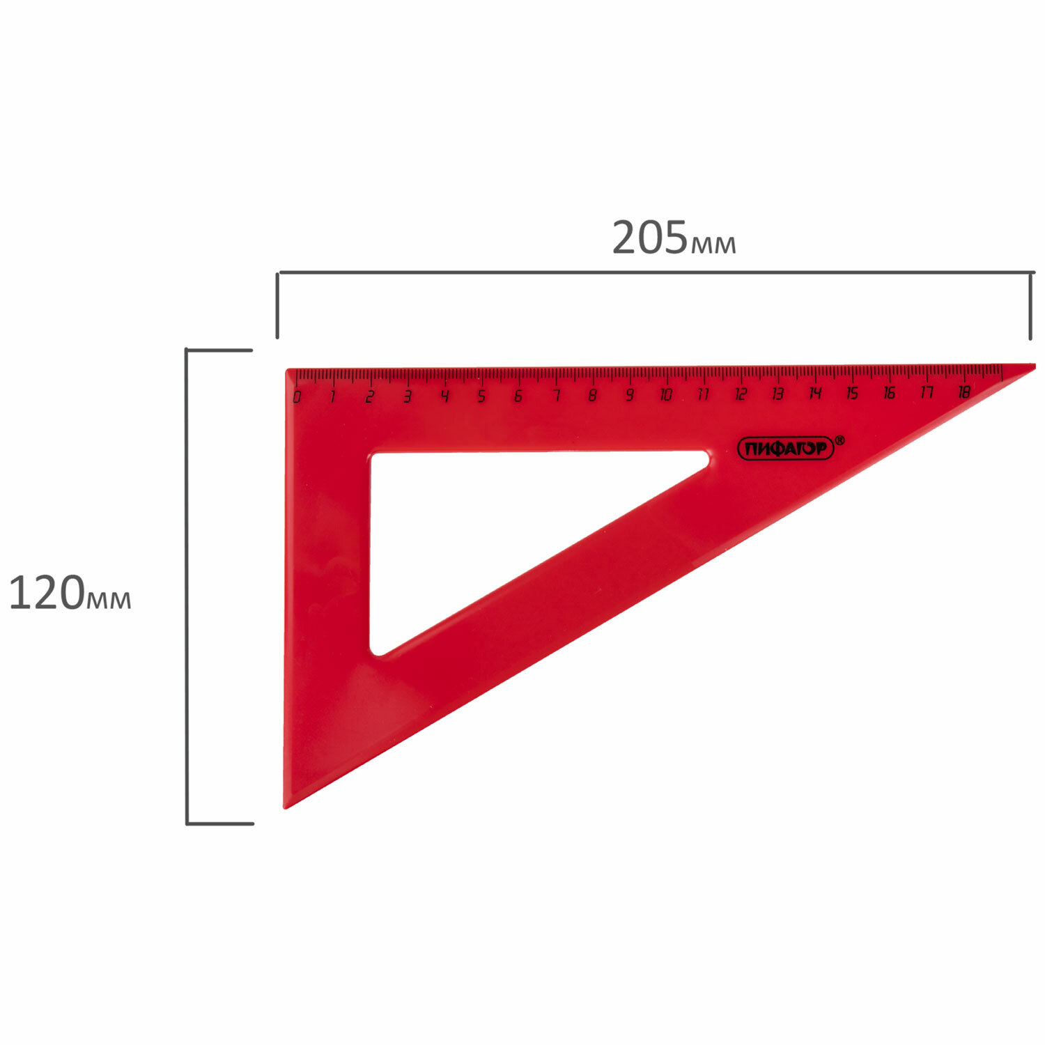 Длина большей стороны треугольника составляет 18 см. Треугольник обладает четкой разметкой, что делает его удобным в использовании. Треугольник пластиковый 30х18 см, ПИФАГОР, ассорти, 210794