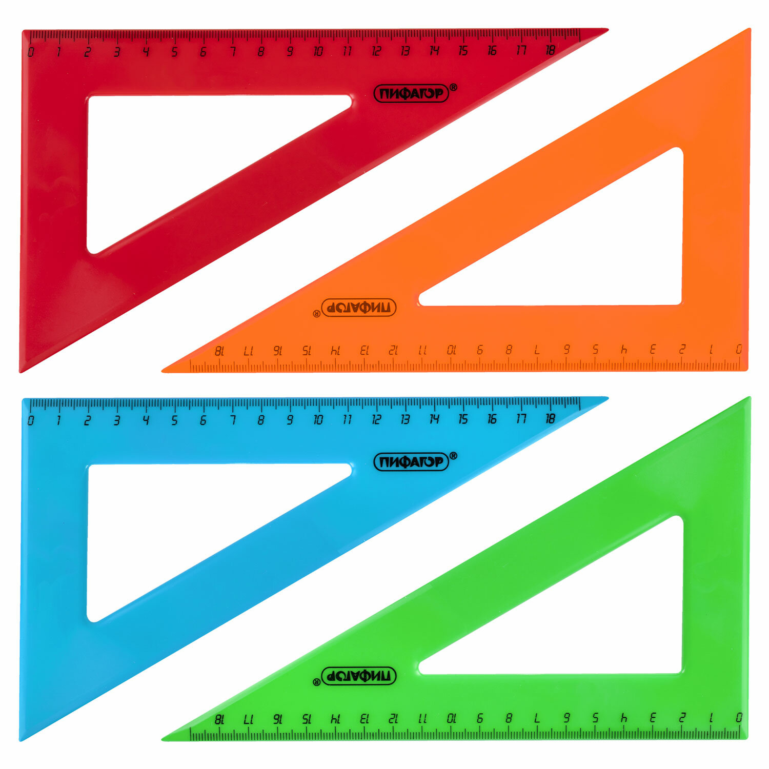 - Треугольник пластиковый 30х18 см, ПИФАГОР, ассорти, 210794