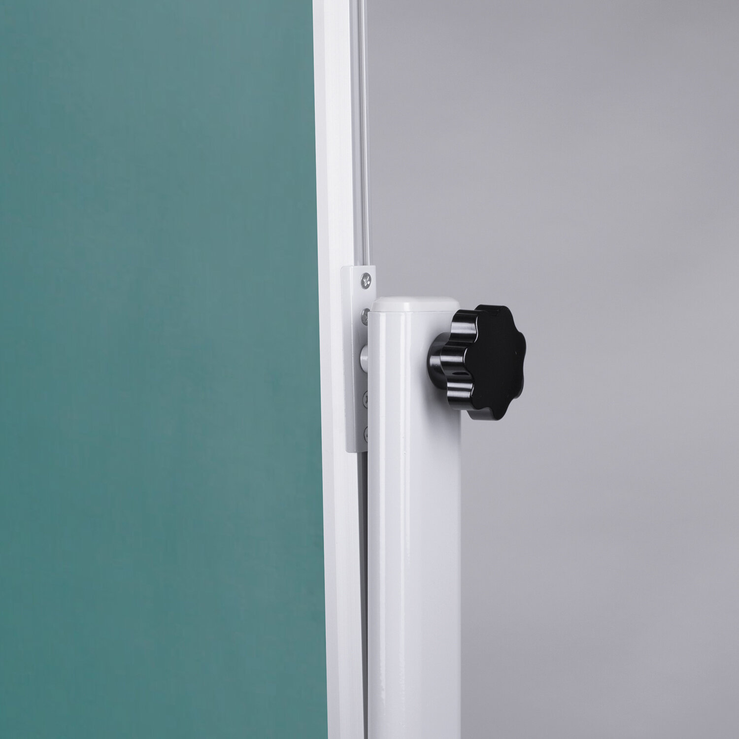 Белая рабочая поверхность с лаковым покрытием предназначена для письма специальными маркерами для белой доски и позволяет размещать информацию при помощи магнитов. Зеленая рабочая поверхность предназначена для письма и рисования мелками. Вращается в горизонтальной плоскости на 360 градусов. Перемещается на колесиках. Элементы крепления входят в комплект. Размер доски: 100х150 см. Доска для мела/магнитно-маркерная НА СТЕНДЕ 100х150 см, 2-сторонняя, зеленая/белая, STAFF, 238006