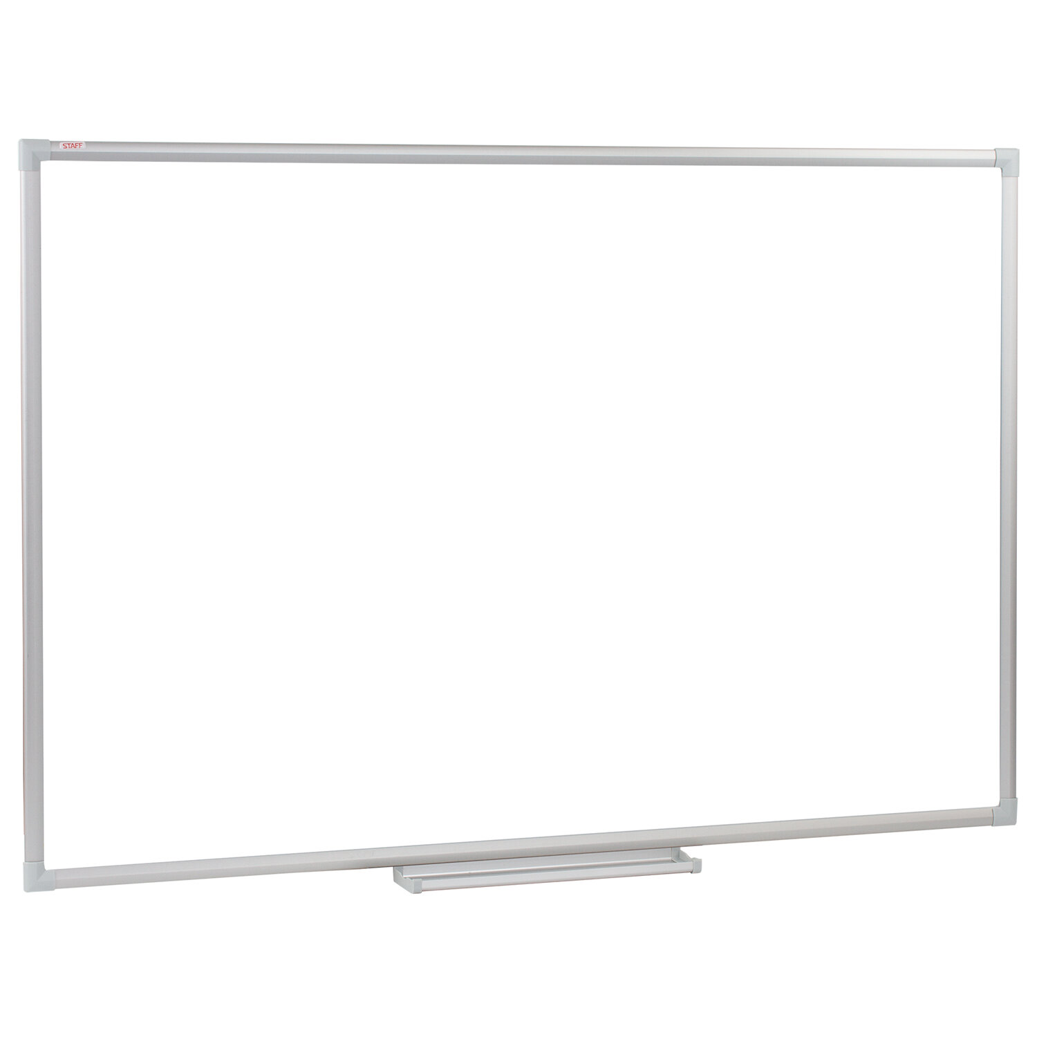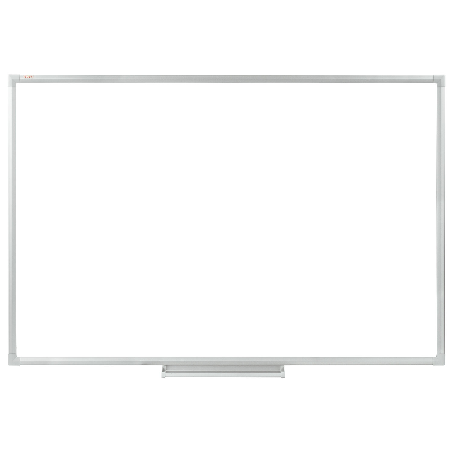 Лаковое покрытие предназначено для письма специальными маркерами для белой доски, а металлическая поверхность позволяет размещать информацию при помощи магнитов. Доска имеет укрепленные пластиковые уголки, которые позволяют скрыть места крепления к стене. Размер - 100х150 см. Профиль придает изделию дополнительную прочность и современный стильный внешний вид. Безопасная полочка для аксессуаров (острые углы металлической полочки закрыты пластиковыми элементами) и элементы крепления входят в комплект. Возможность горизонтального и вертикального крепления. Надежная упаковка: каждая доска упаковывается в индивидуальную коробку. Перед началом работы убедитесь в отсутствии защитной плёнки. При должном уходе за рабочей поверхностью доски при помощи чистящей жидкости-спрея и стирателей от нашей компании поверхность магнитно-маркерной доски прослужит более 10 лет. Доска магнитно-маркерная 100х150 см, алюминиевая рамка, Польша, STAFF Profit, 237723