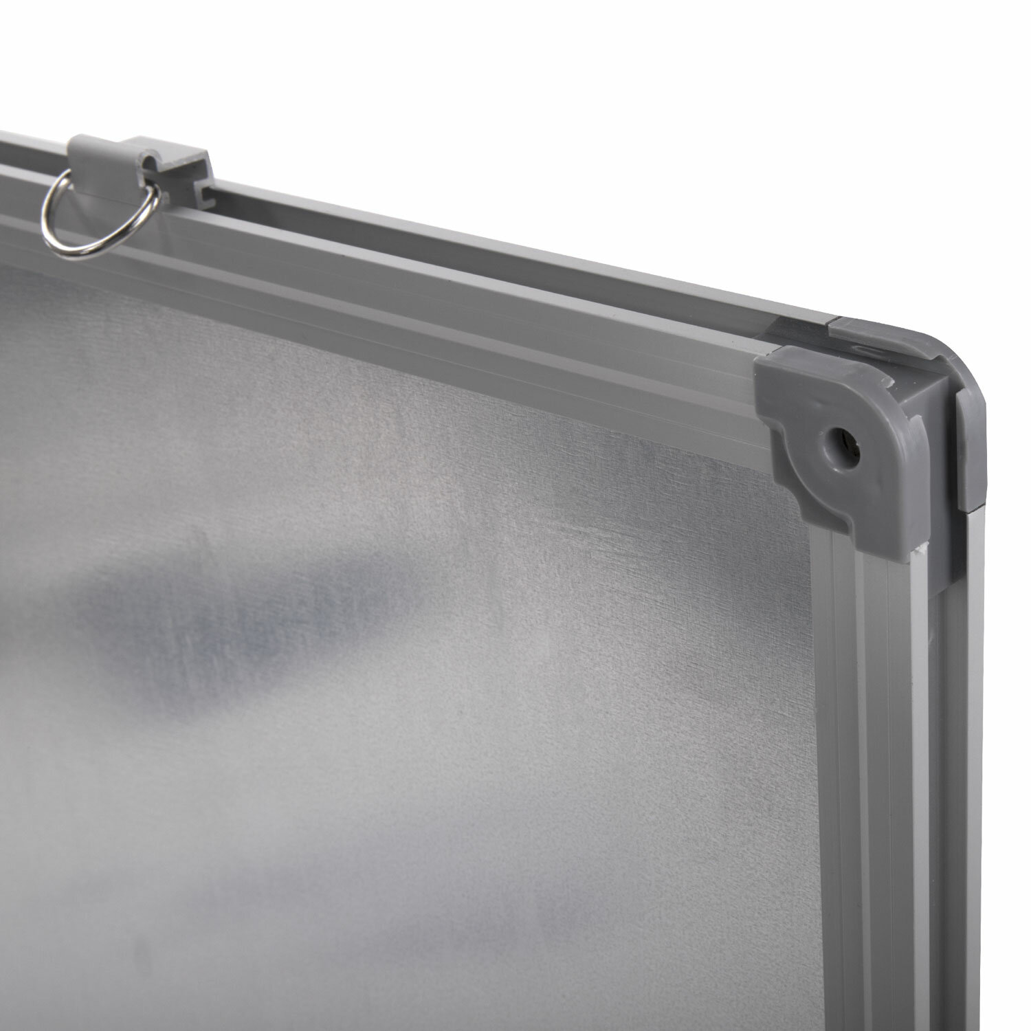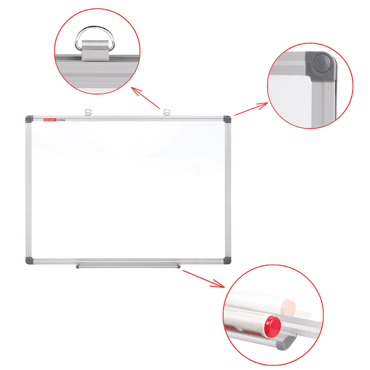 Лаковое покрытие предназначено для письма специальными маркерами для белой доски, а металлическая поверхность позволяет размещать информацию при помощи магнитов. Доска размером 45х60 см имеет укрепленные пластиковые уголки, которые позволяют скрыть места крепления к стене. Профиль придает изделию дополнительную прочность и современный стильный внешний вид. Элементы крепления входят в комплект. Для защиты рабочей поверхности доски на нее нанесена защитная пленка. Перед началом работы – удалить защитную пленку.