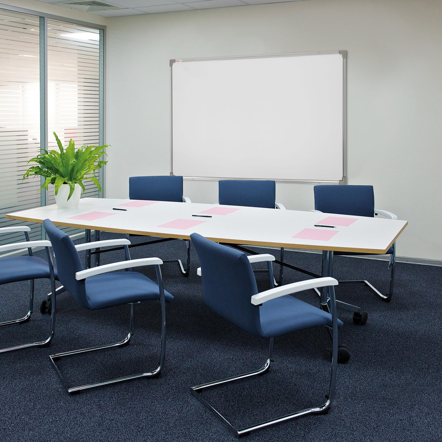 Лаковое покрытие предназначено для письма специальными маркерами для белой доски, а металлическая поверхность позволяет размещать информацию при помощи магнитов. Доска надежно крепится к стене при помощи идущих в комплекте кронштейнов. Укреплённые пластиковые уголки позволяют скрыть места крепления к стене. Металлический профиль цвета анодированного алюминия придает изделию дополнительную прочность и современный стильный внешний вид. Защитная пленка предупреждает появление царапин, потертостей и сколов на рабочей поверхности доски при транспортировке и хранении продукции (перед началом работы необходимо удалить защитную плёнку). Без лотка для аксессуаров. Размер: 90х120 см. Надежная упаковка: картонная коробка. Доска магнитно-маркерная 90х120 см, металлическая рамка, STAFF ECO, 238138