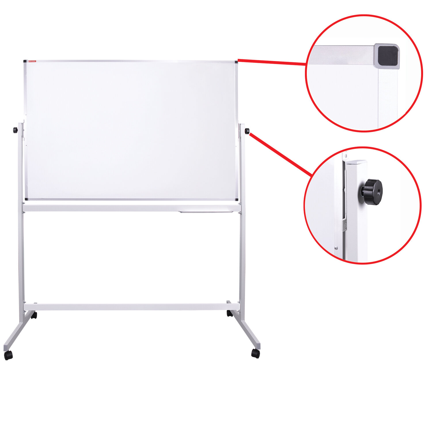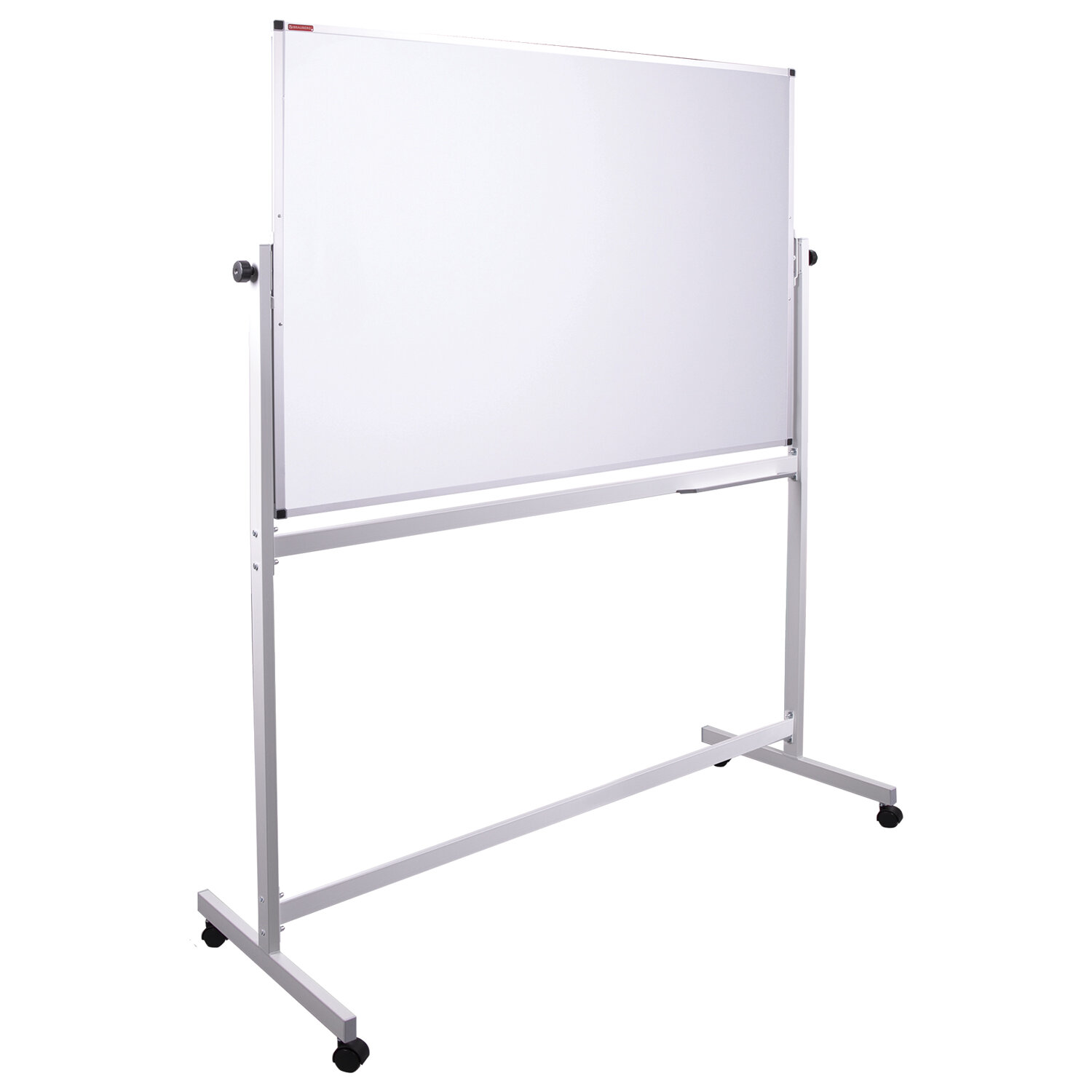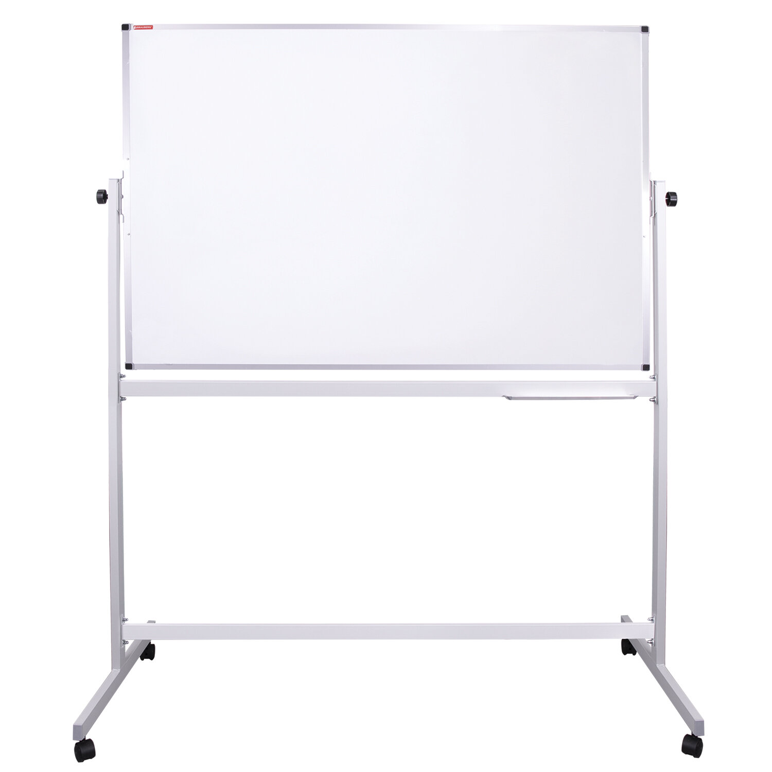 Лаковое покрытие предназначено для письма специальными маркерами для белой доски, а металлическая поверхность позволяет размещать информацию при помощи магнитов. Вращается в горизонтальной плоскости на 360°. Перемещается на колесиках. Алюминиевая рама придает доске необходимую прочность. Подставка для канцелярских принадлежностей позволяет всегда держать под рукой магниты, маркеры, стиратели и другие необходимые предметы. Элементы крепления входят в комплект. Защитная пленка предупреждает появление царапин, потертостей и сколов на рабочей поверхности доски при транспортировке и хранении продукции (перед началом работы необходимо удалить защитную плёнку). Размер: 100х150 см. Доска магнитно-маркерная НА СТЕНДЕ 100х150 см, 2-сторонняя, BRAUBERG, 238141