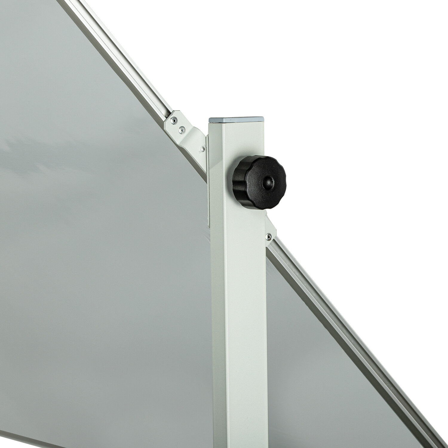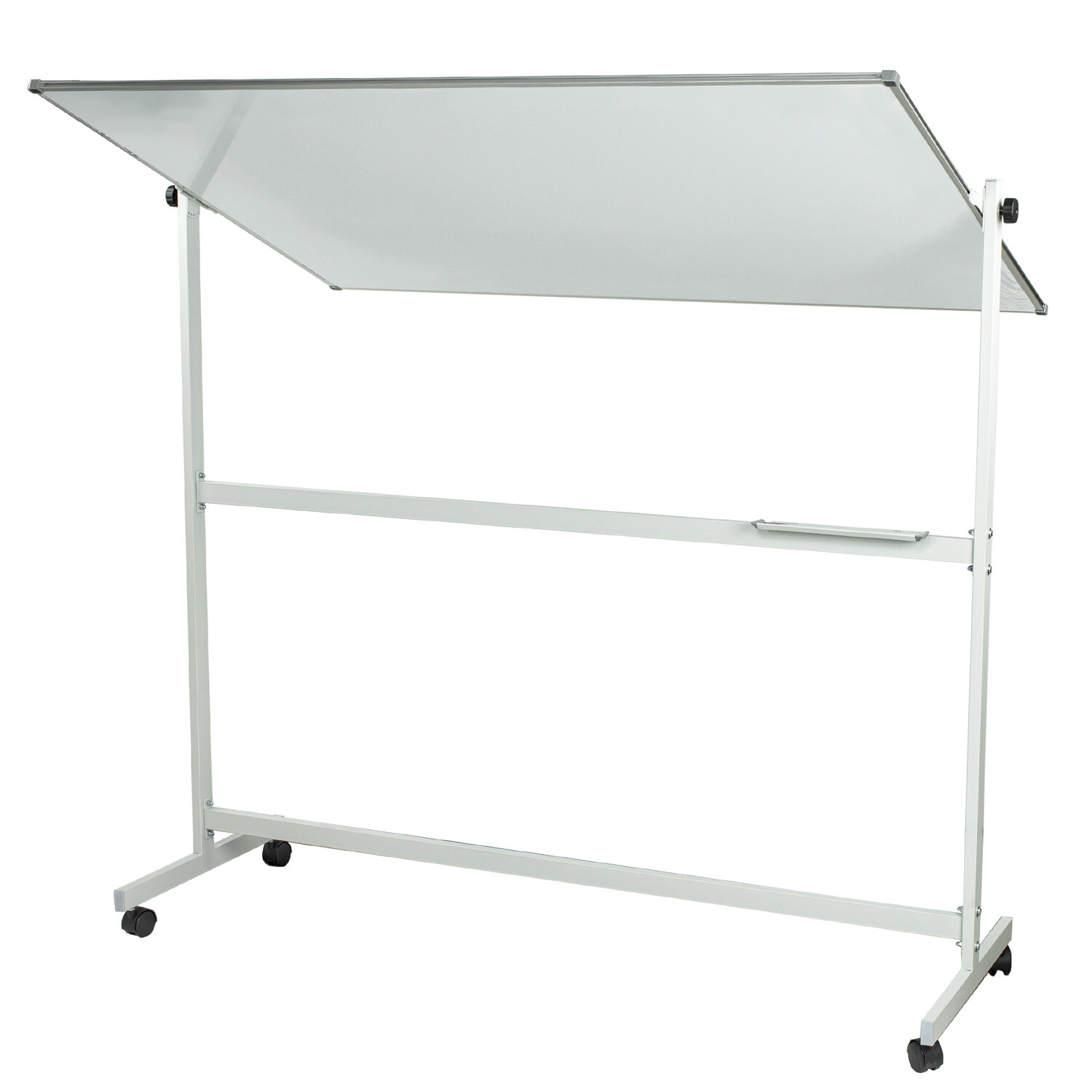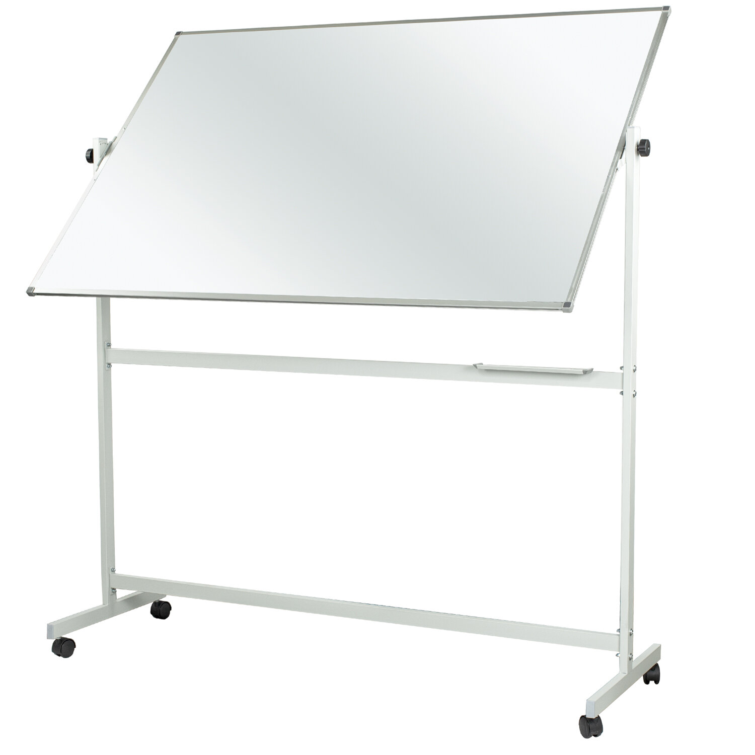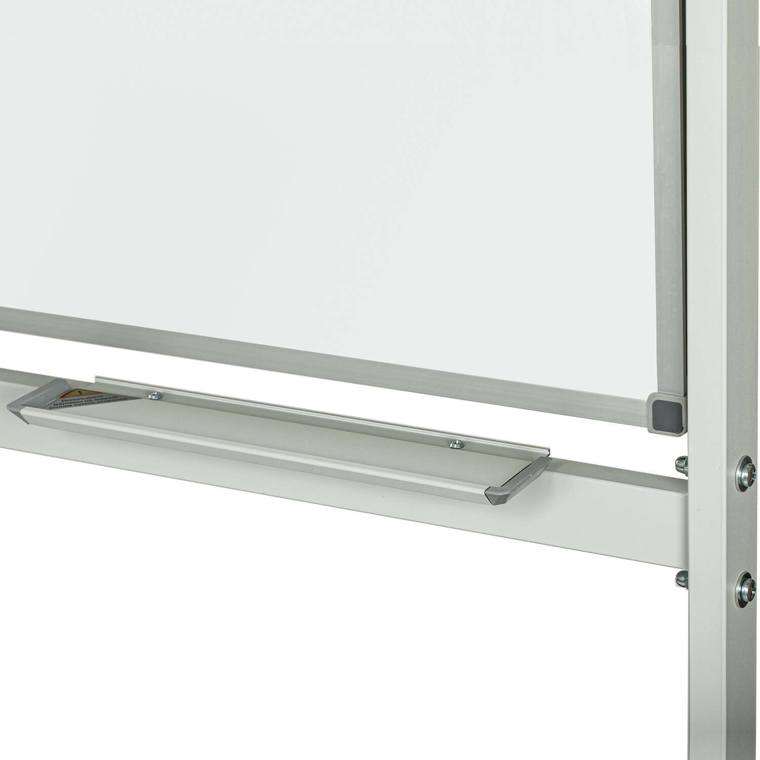 Лаковое покрытие предназначено для письма специальными маркерами для белой доски, а металлическая поверхность позволяет размещать информацию при помощи магнитов. Алюминиевая рама придает доске необходимую прочность. Две рабочие магнитно-маркерные поверхности расположены на стенде. Имеется возможность изменения радиуса наклона доски и фиксации полотна в одном из пяти положений. Перемещается на колесиках. Элементы крепления входят в комплект. Размер - 100х150 см. Размеры полки для маркера: длина - 40 см, ширина - 4,5 см. При должном уходе за рабочей поверхностью доски при помощи чистящей жидкости-спрея и стирателей BRAUBERG поверхность магнитно-маркерной доски прослужит более 10 лет.