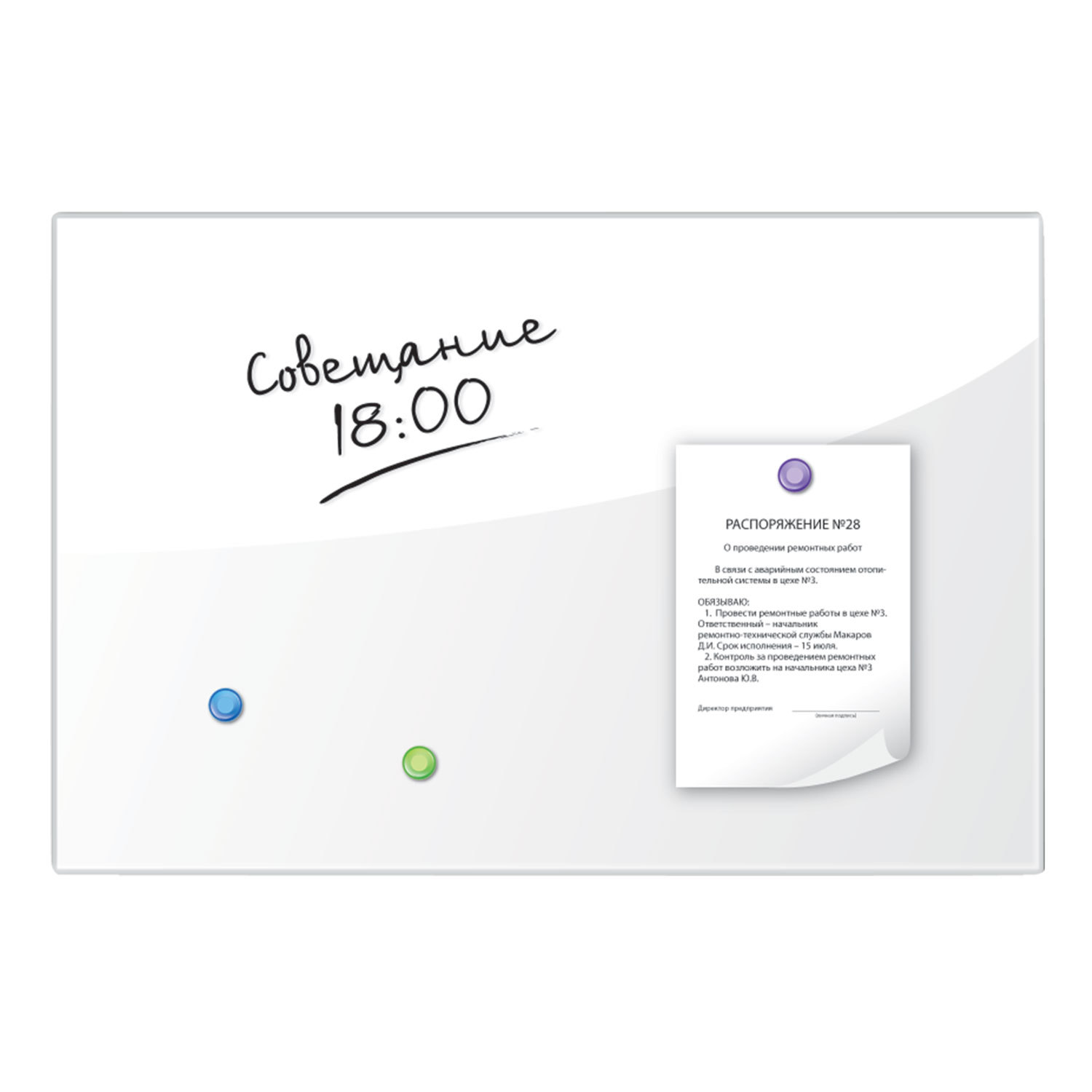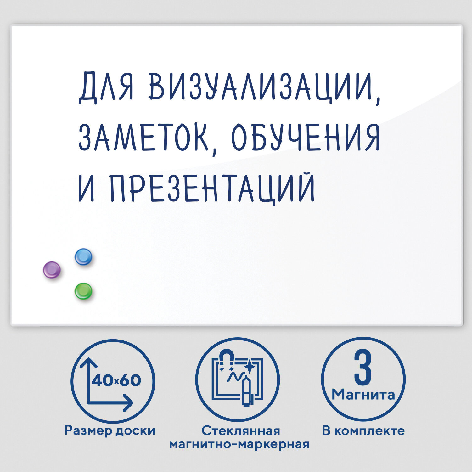 - Доска магнитно-маркерная стеклянная 40х60 см, 3 магнита, БЕЛАЯ, BRAUBERG, 236744