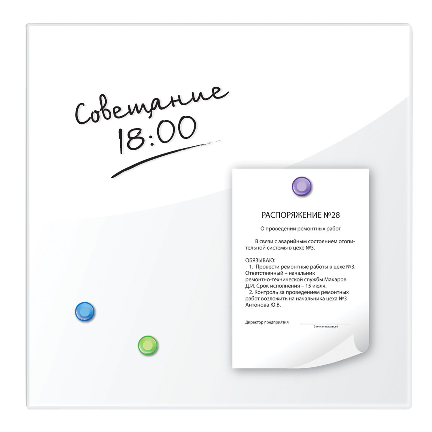 - Доска магнитно-маркерная стеклянная 45х45 см, 3 магнита, БЕЛАЯ, BRAUBERG, 236735