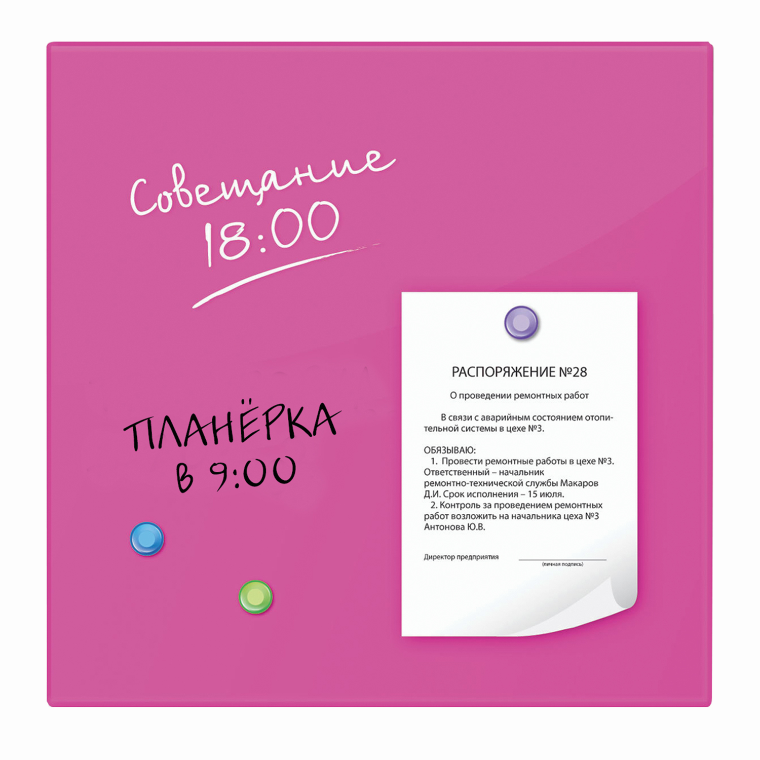 - Доска магнитно-маркерная стеклянная 45х45 см, 3 магнита, РОЗОВАЯ, BRAUBERG, 236742